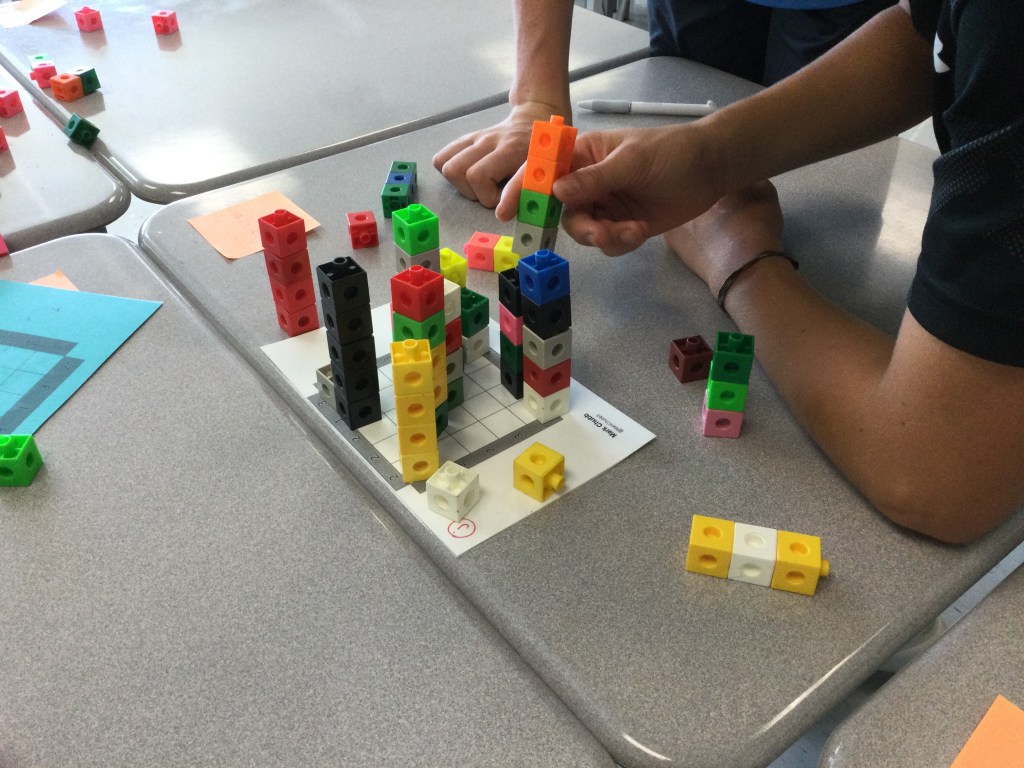 On day 1 we practice what we value, teamwork, and productive struggle as we tackle a challenging problem. We worked on speaking in French, sharing our ideas, taking charge sometimes, but not taking over. This problem in particular is a good one for valuing different perspectives and viewpoints (literally).