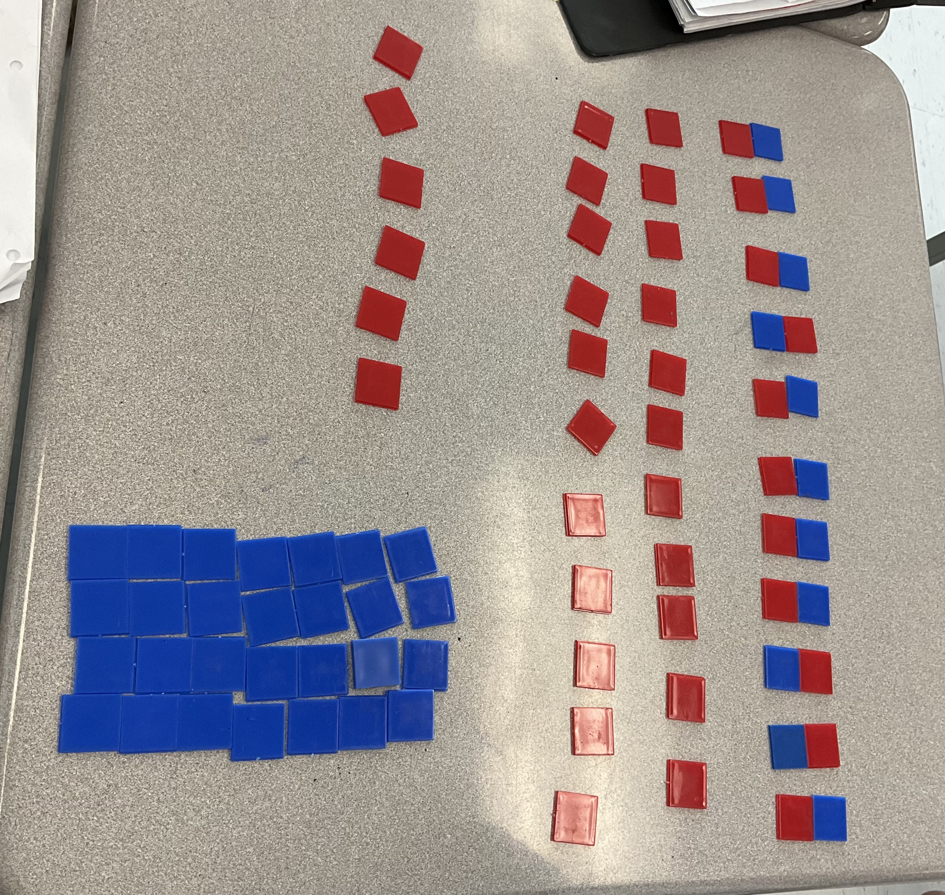Students started out by making a bucket of zeros with many zero pairs on their desk.