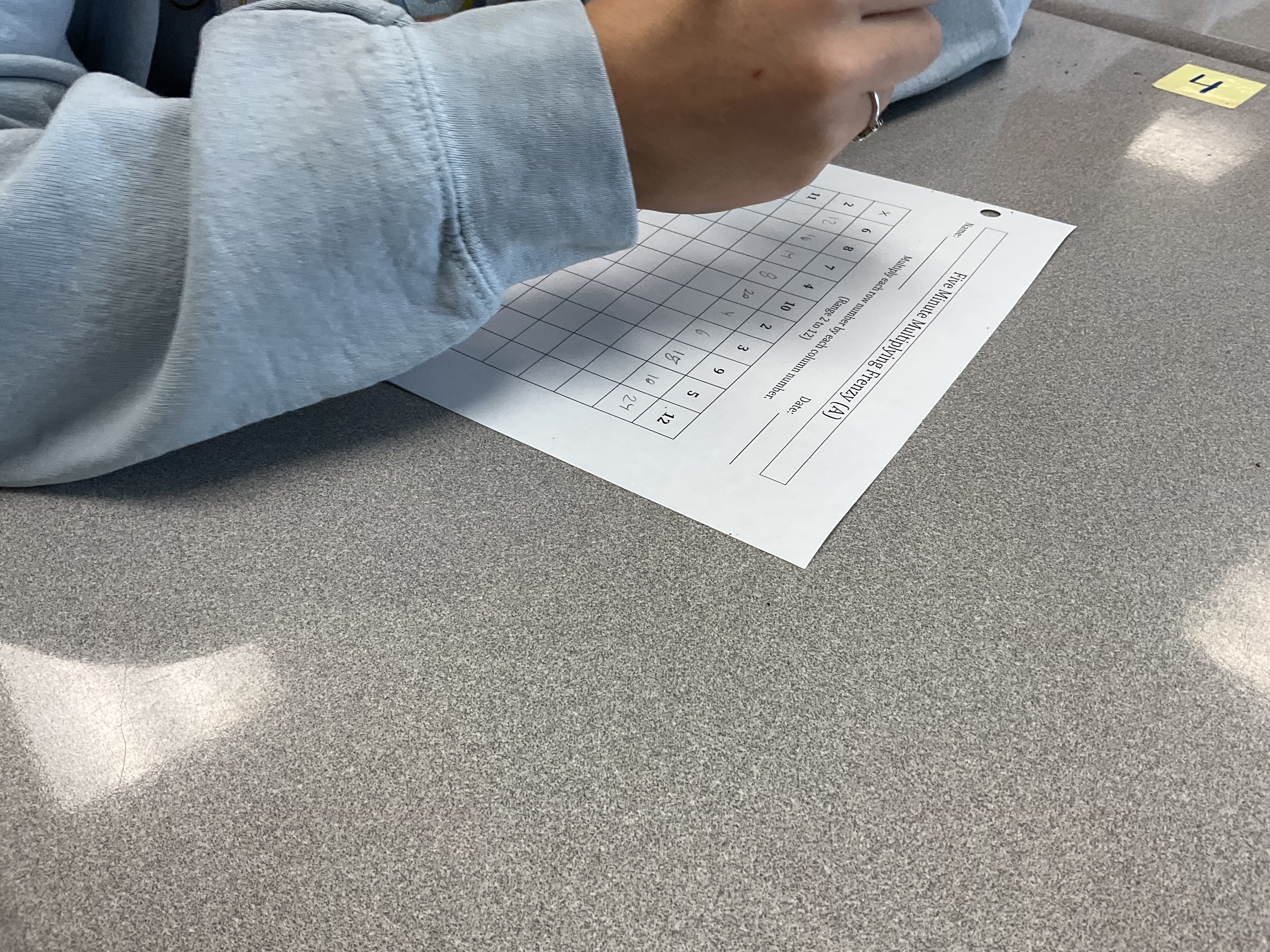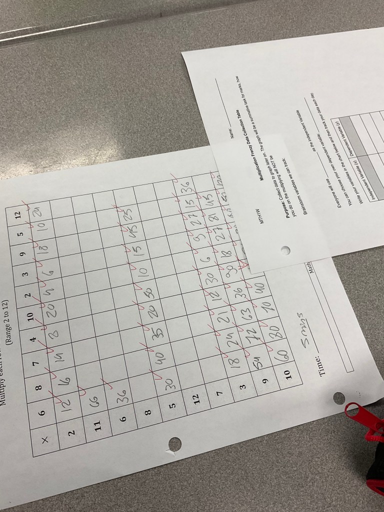 Each student is going to be doing a “five minute frenzy” multiplication challenge.
