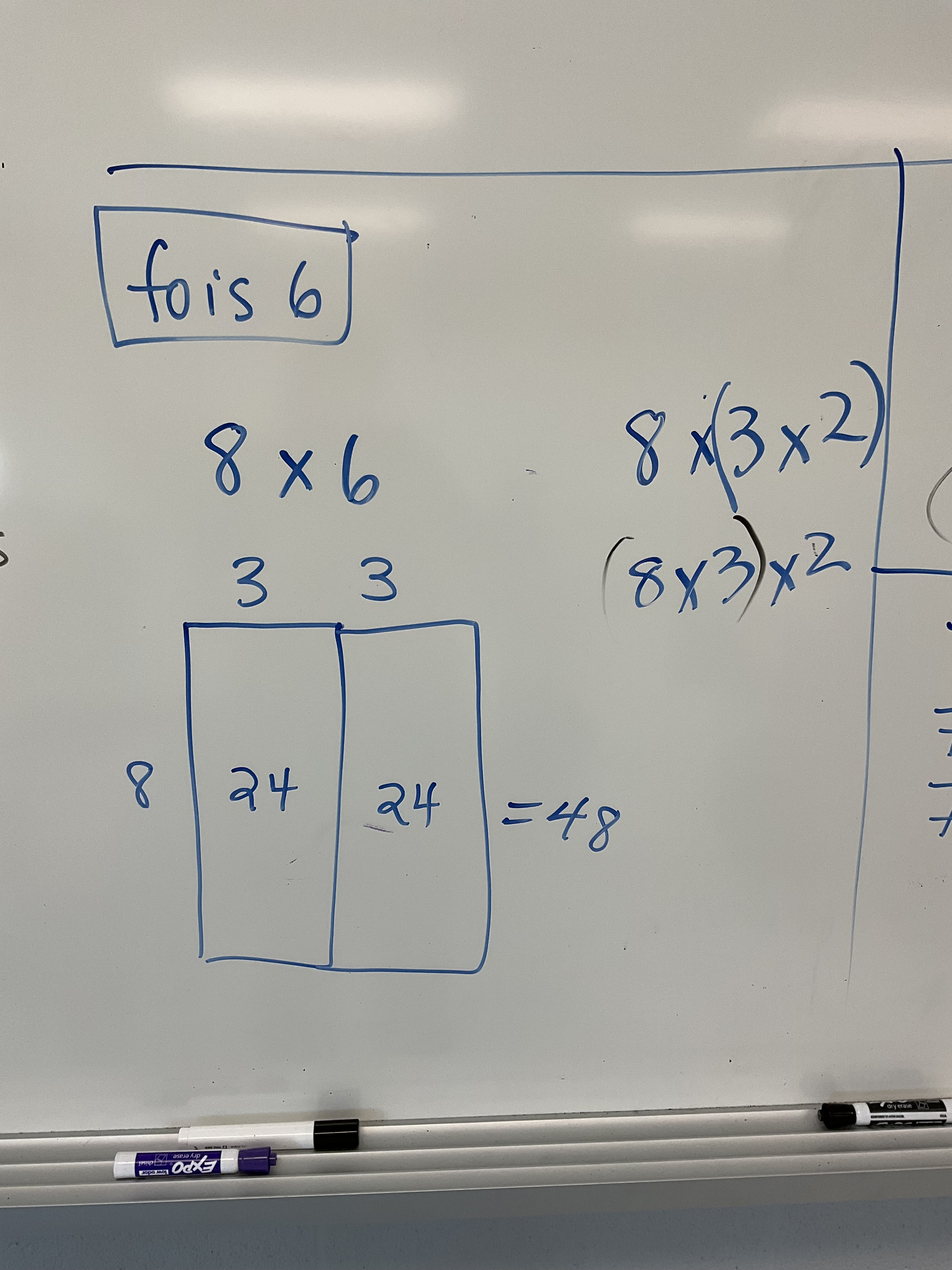 We looked at multiplying by 4 and by 8 using the associative property as well.