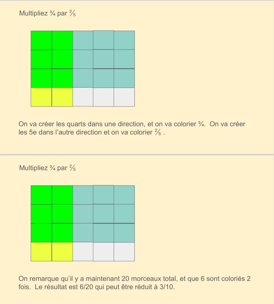 We’ve been spending time working on operations with fractions. We’ve looked at a few ways of working out solutions, with drawings, and also with algorithms.
