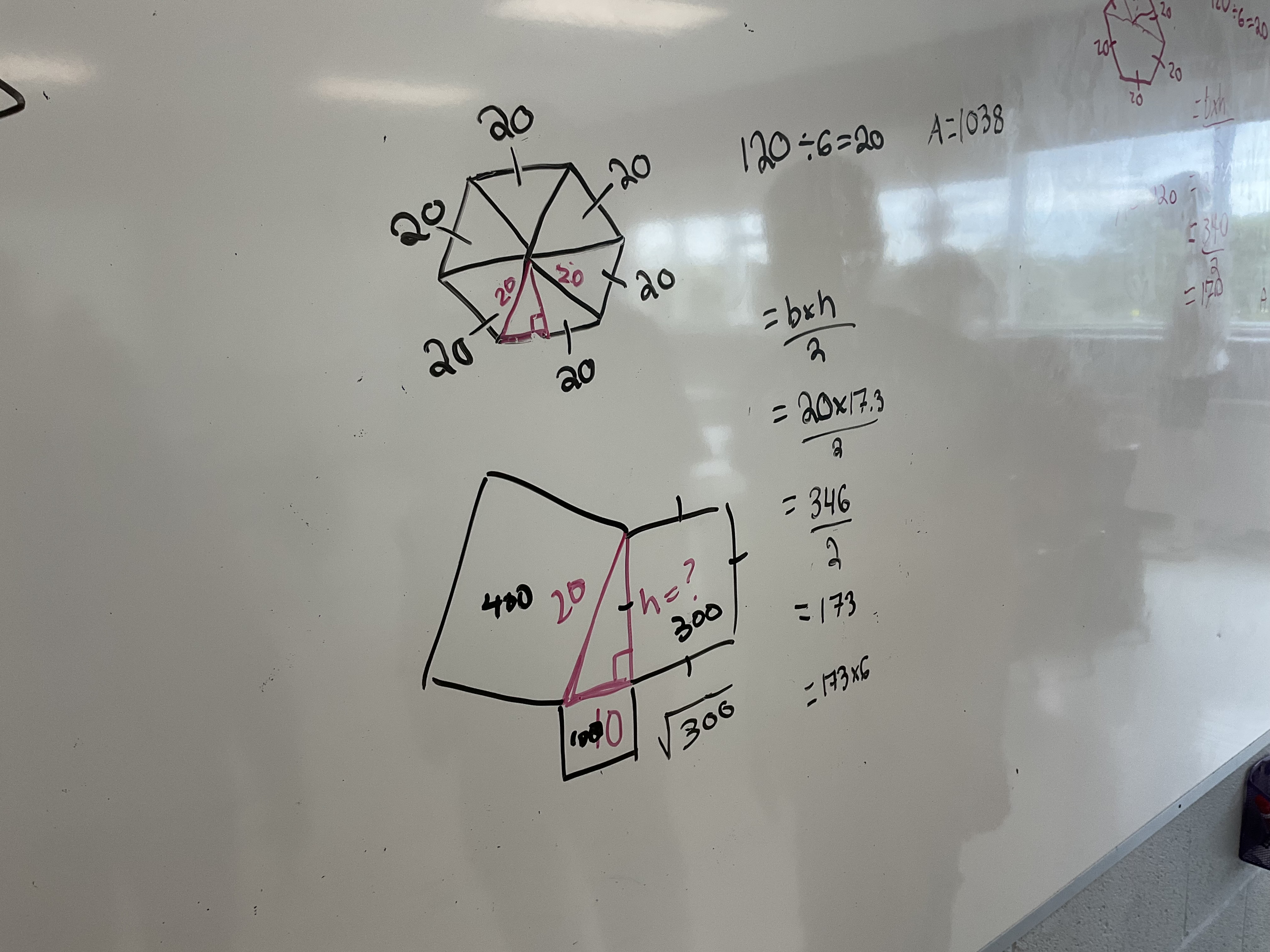 This is a nice diagnostic to see if students remember the pythagorean theorem. We’ll explore this more later, but we need to use it to find the height of each triangle.
