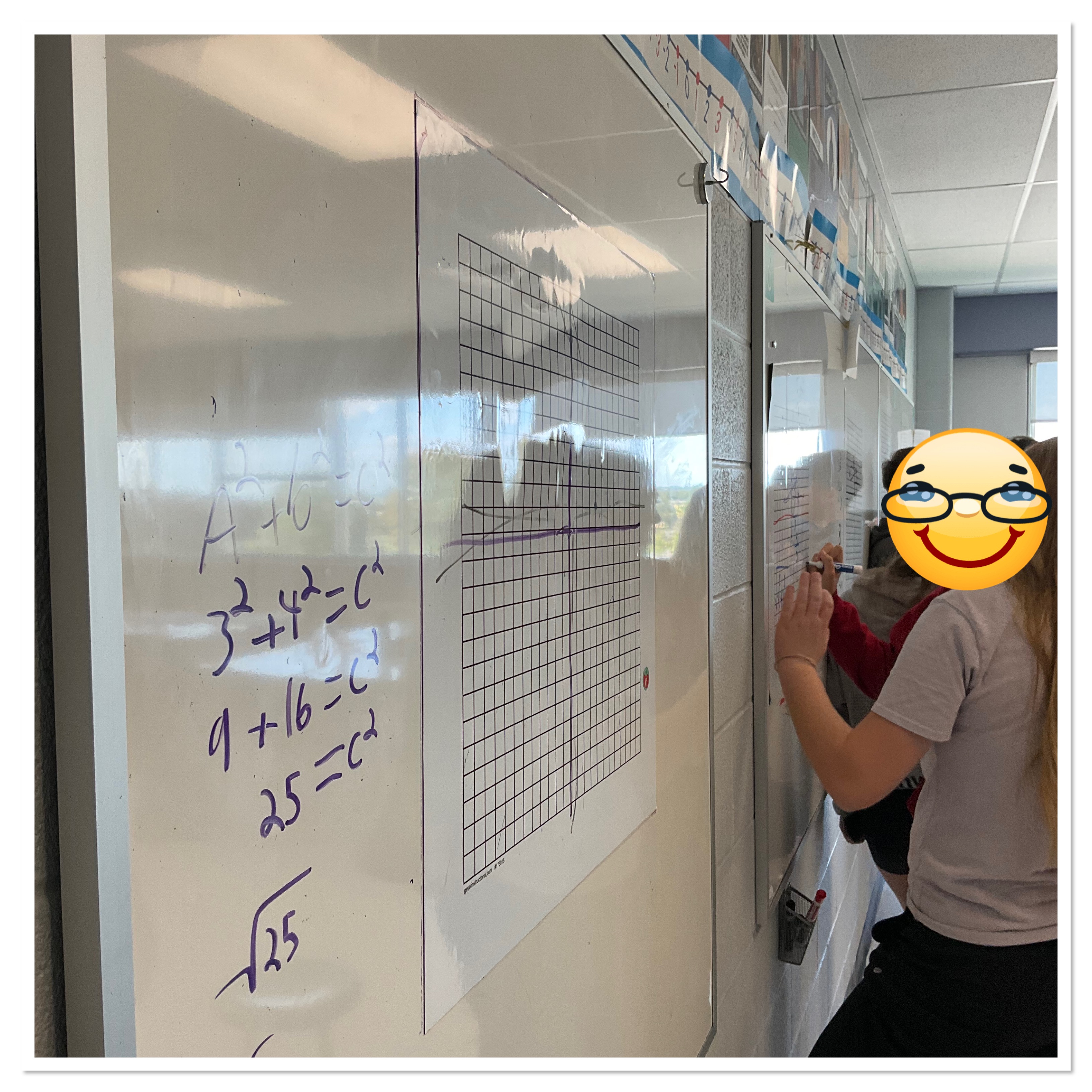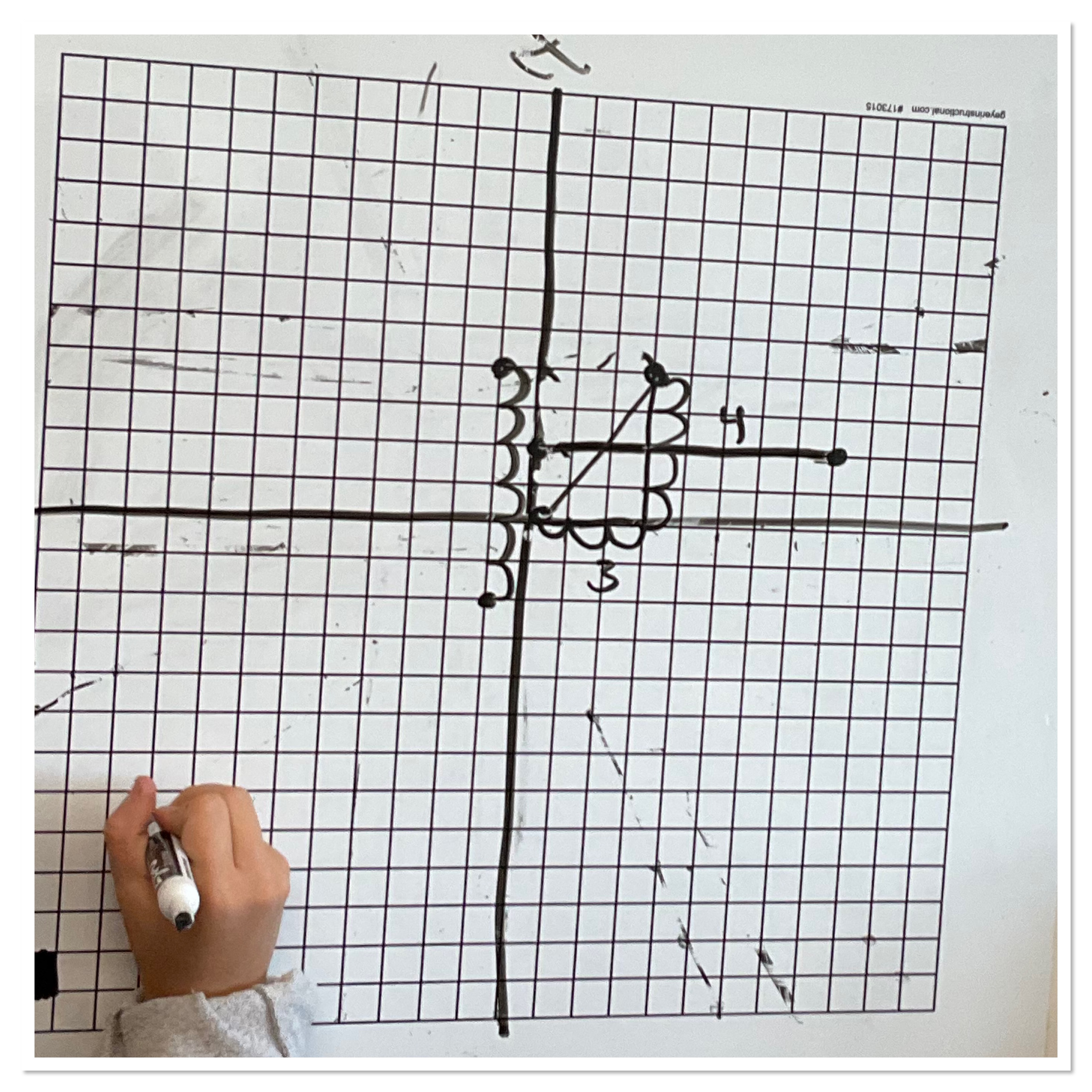 The next challenge was to find the length of the segment between (0,0) and (3,4). There was a bit of a struggle, until some students started to draw a right triangle to help.