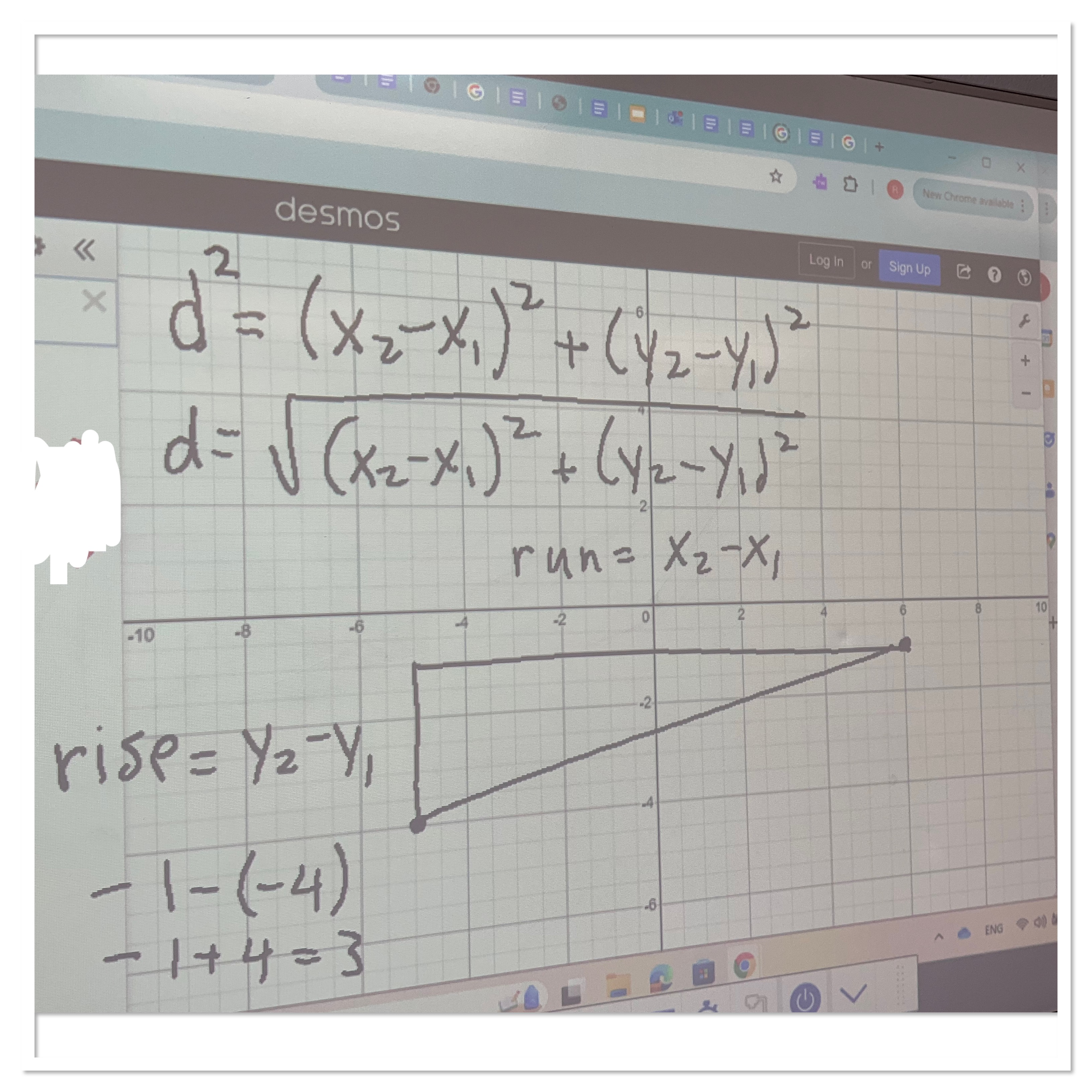 I asked some groups to try to find the distance between any two points (x1,y1) and (x2,y2). It was neat to see students use their idea of rise and run to create an equation.