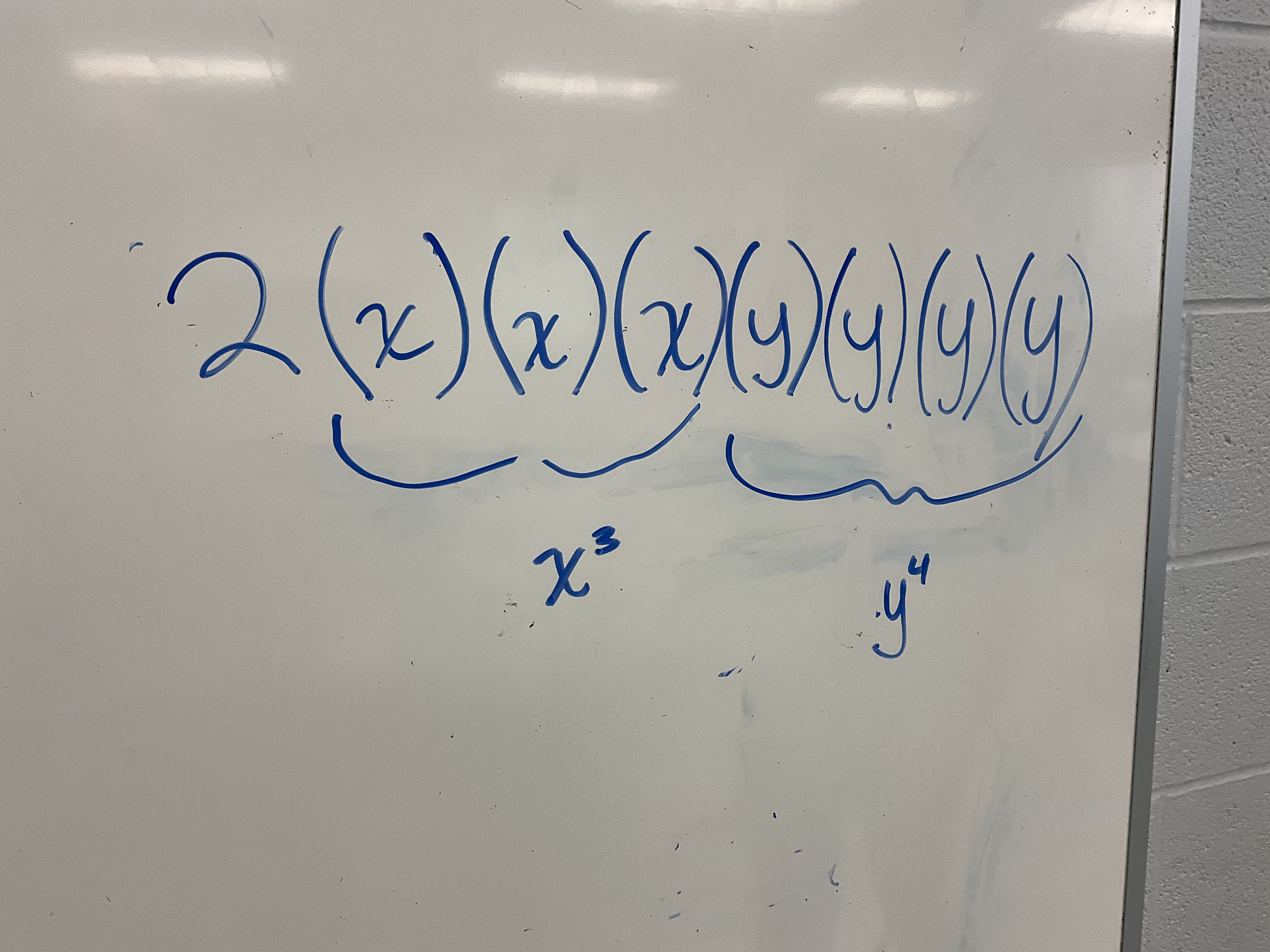 this can be written as (-4)(-2)(x)(x)(x)(x)(y)(y)(y)(y)(y)(y) since the order doesn’t matter when we multiply.