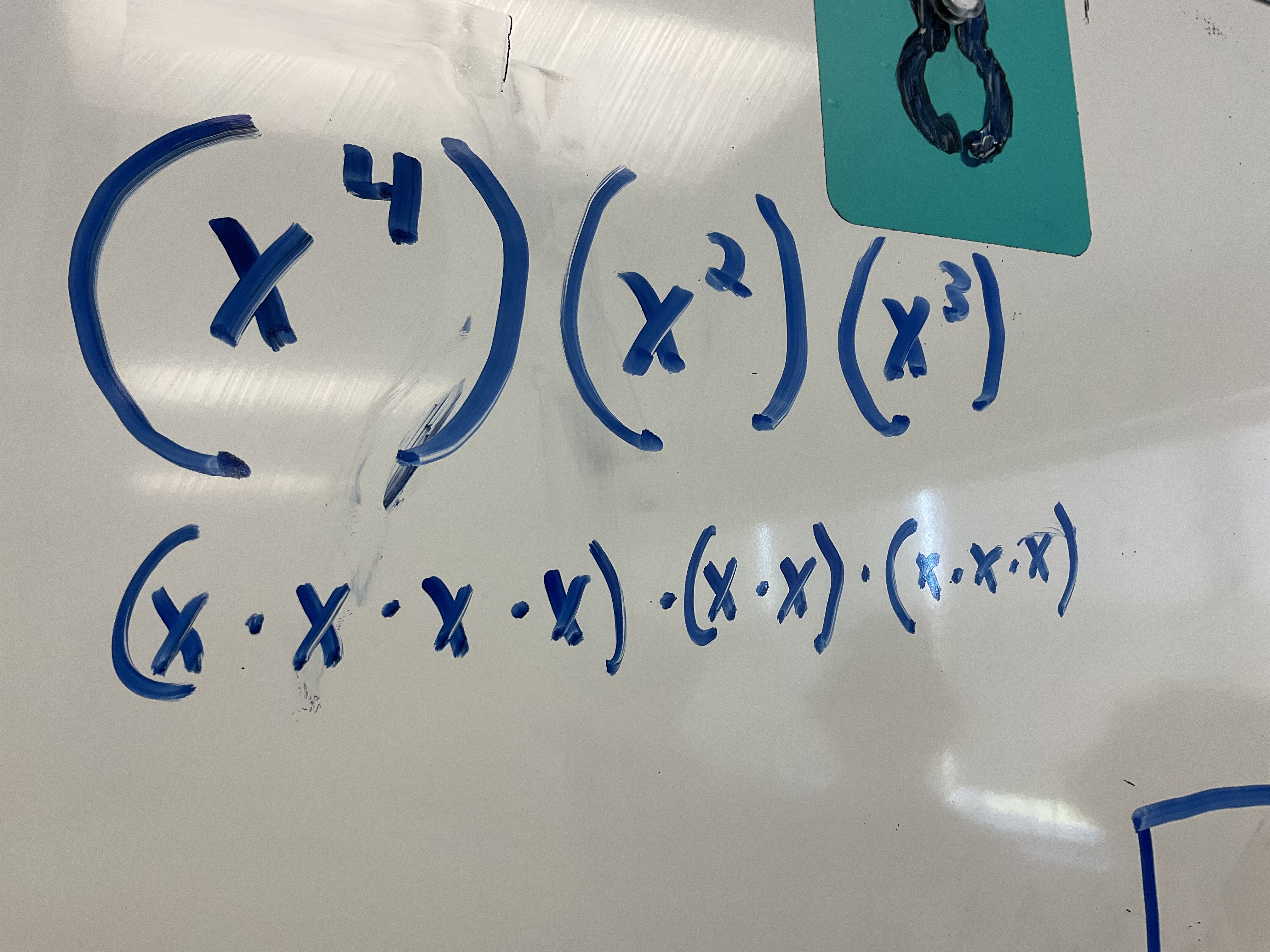 Today grade 9s were working hard to represent multiplication in many ways. Here’s a sequence of questions that led us to the exponent law for multiplying.