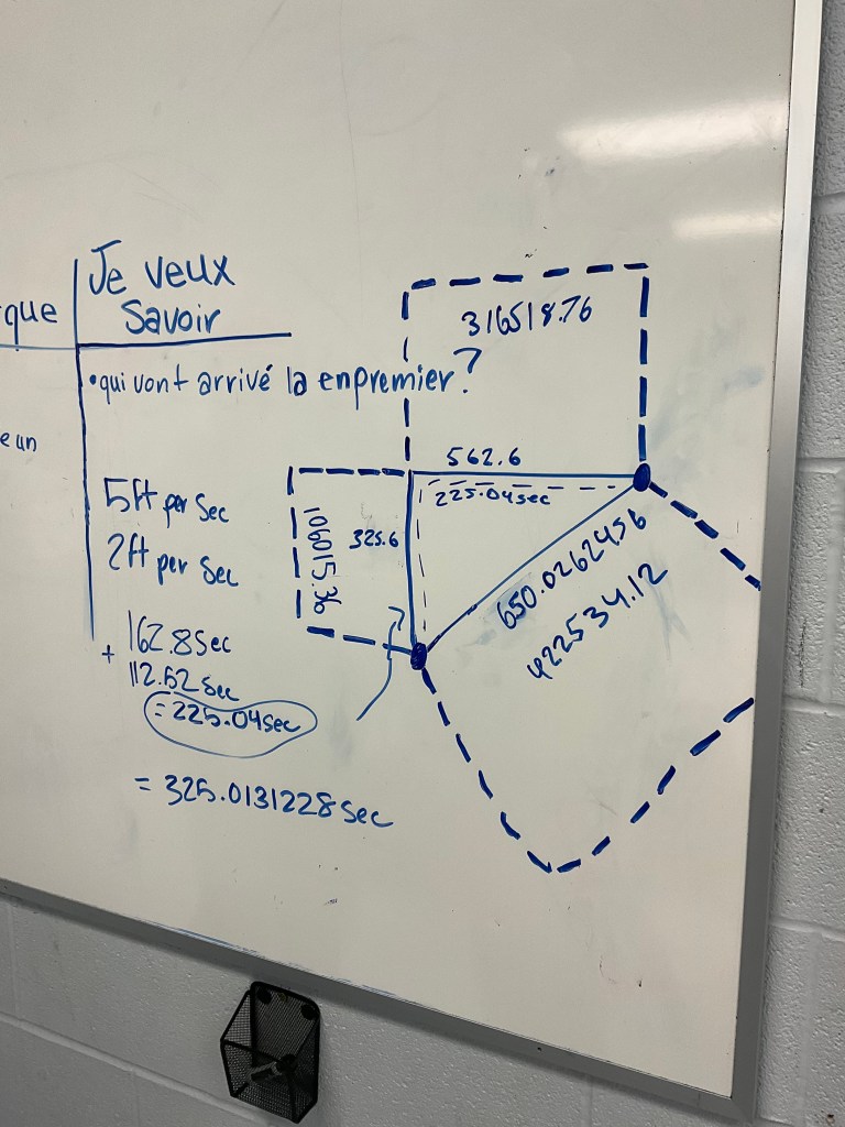 For Act 3 we had a look at the features of the various student solutions. The use of a clear diagram, and showing calculations and explaining a bit about how to think through the rates of ft/s and how that affects the answers, and then how to convert to minutes. We then watched the 3rd video and saw how close we came.