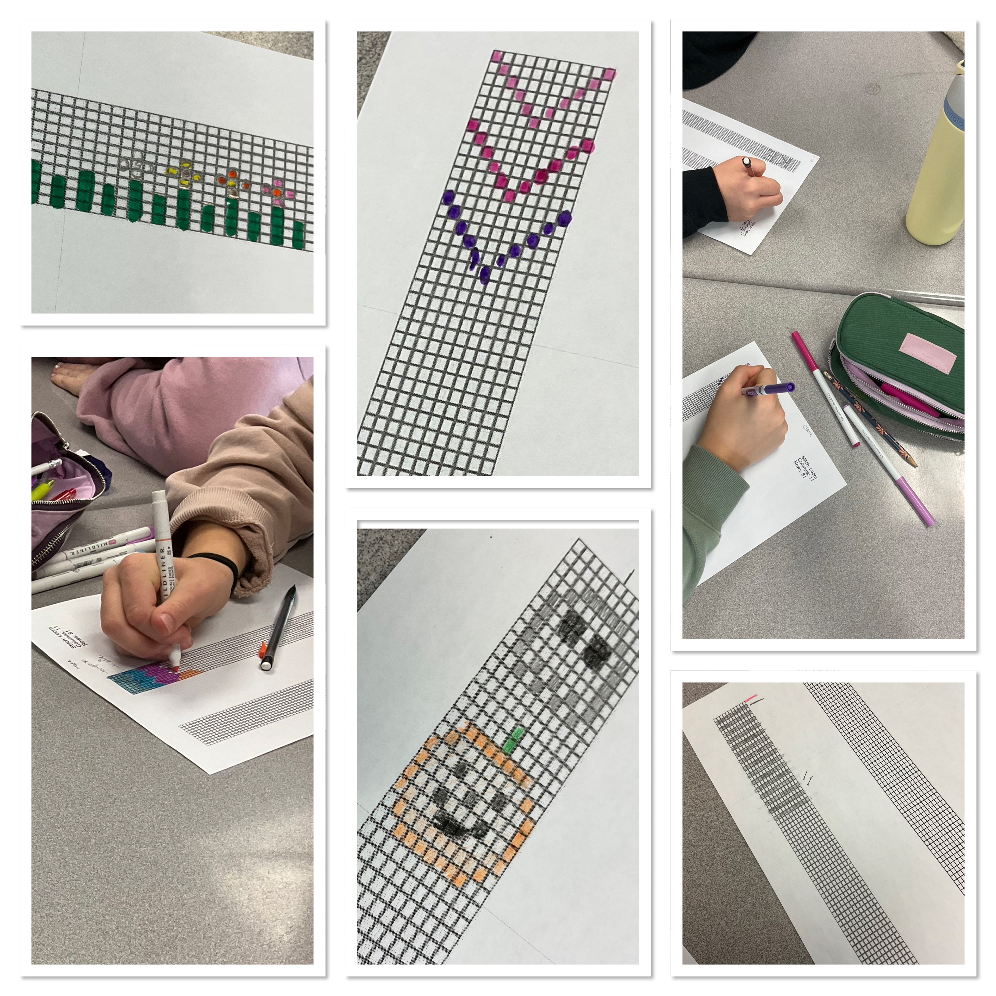 We talked about the different math that can be explored through beading. Concepts like symmetry, rotations, reflections, area model, percent that is a certain colour, lines, parallel lines, slopes, intersections, shapes, angles, proportional reasoning about how many red beads to add for each pattern repeat of 3 rows etc…the list goes on!