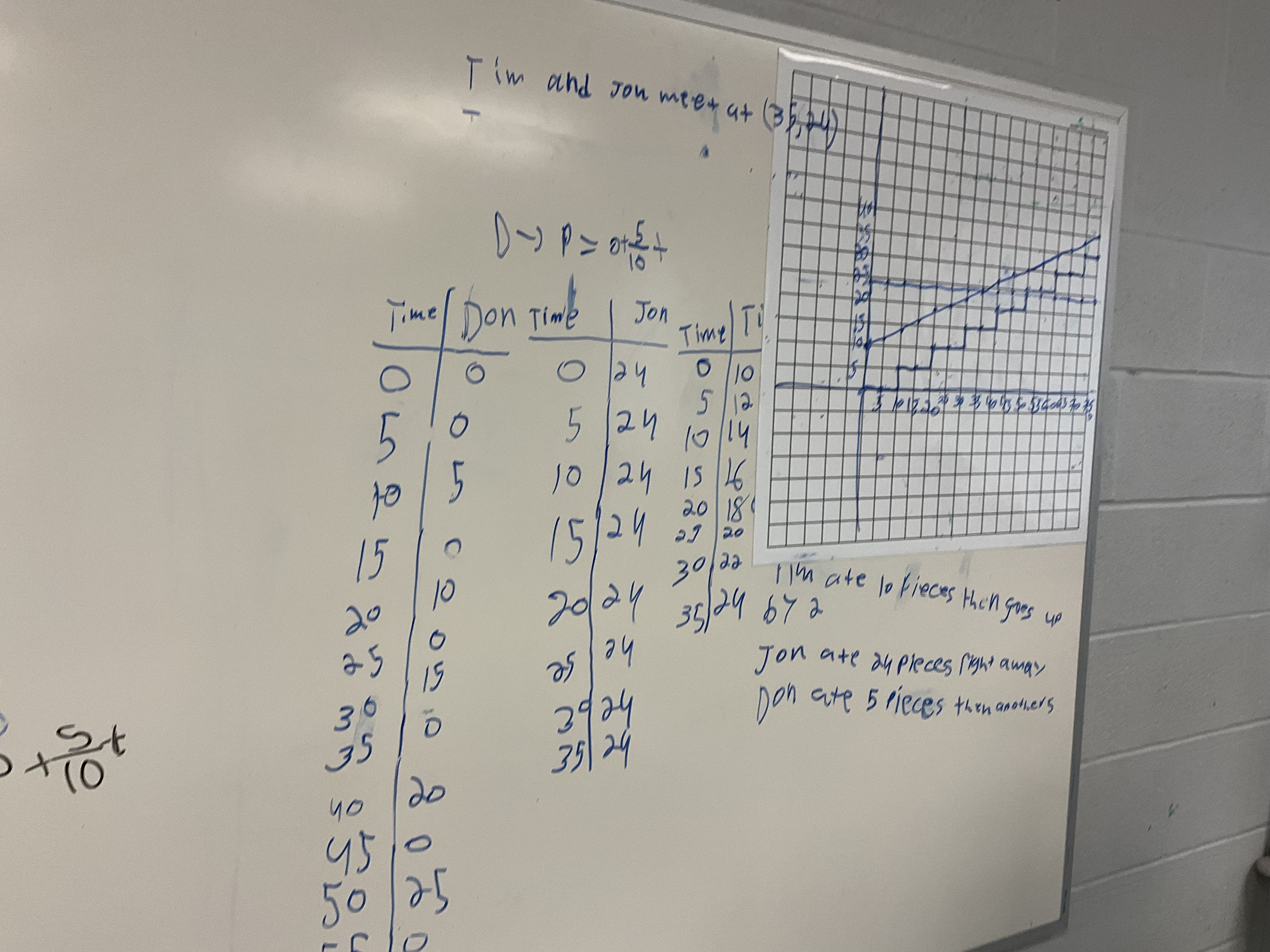 We consolidated and noticed how we could have made equations to show the same information, and used them to calculate intersection points that may occur off the graph.