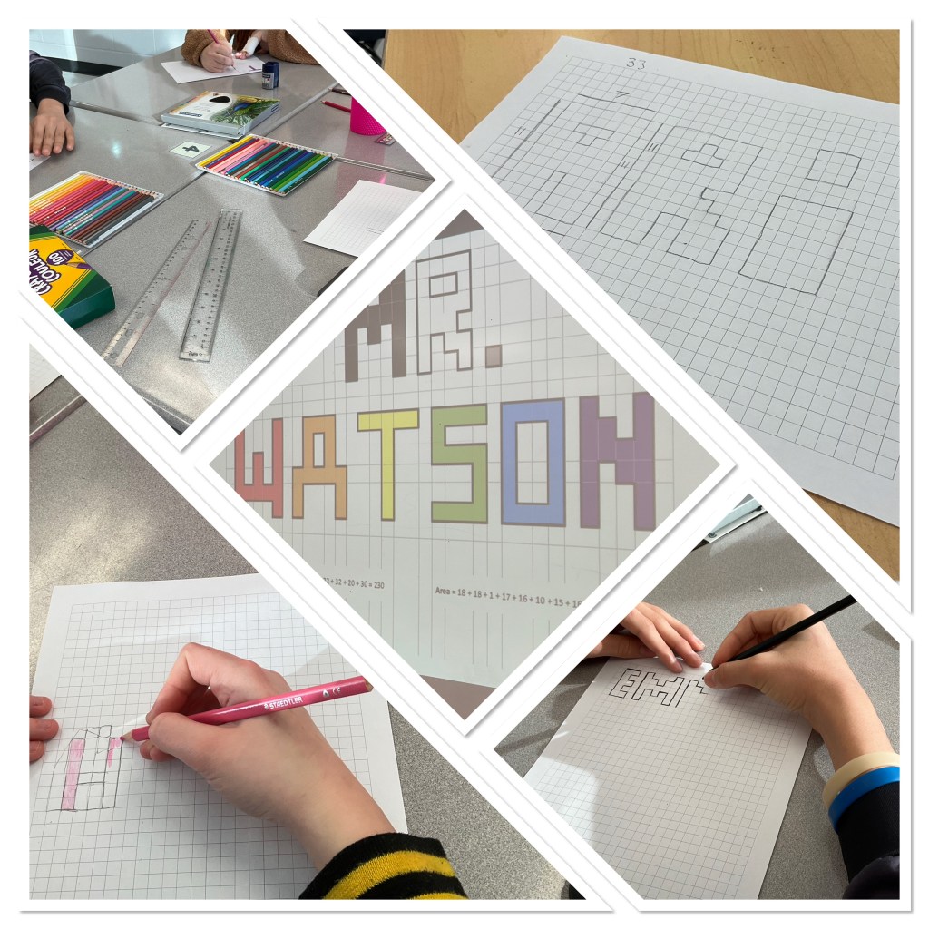 I visited a MTH1W class as they were working on perimeter and area concepts. They plotted their names and calculated the perimeter and area of their names. It’s a good review of the differences between perimeter and area, before moving on to look at other composite shapes.