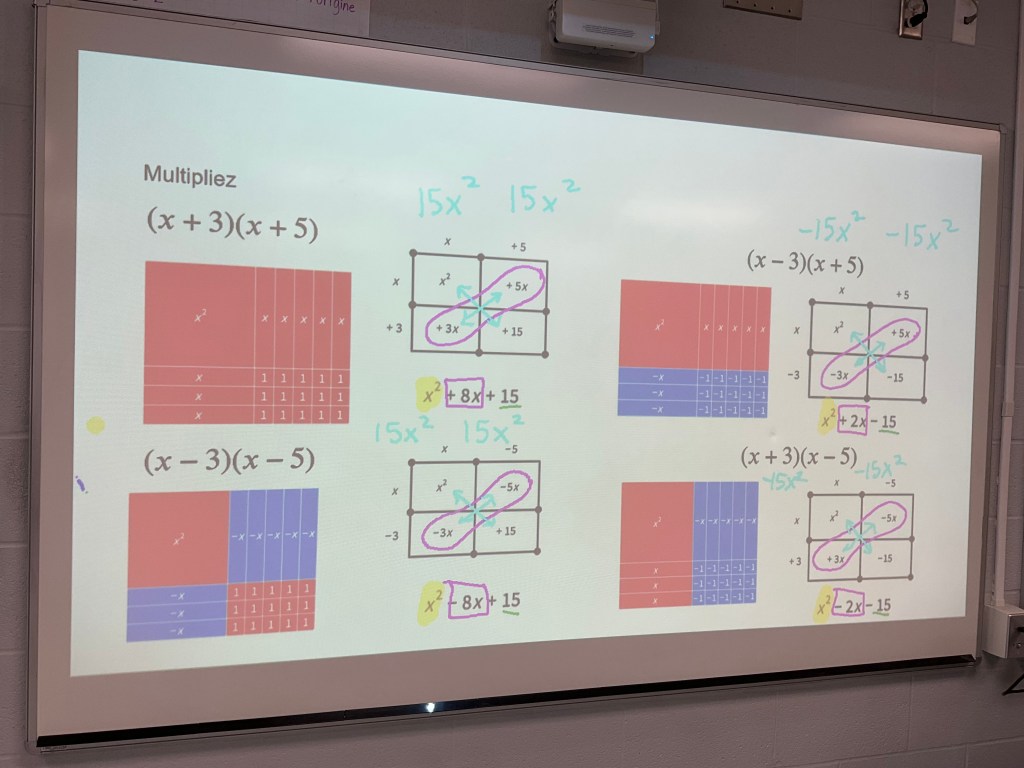 We worked hard at the walls in groups to use the area model to expand and also to factor. We are going to keep working on these skills moving forward.