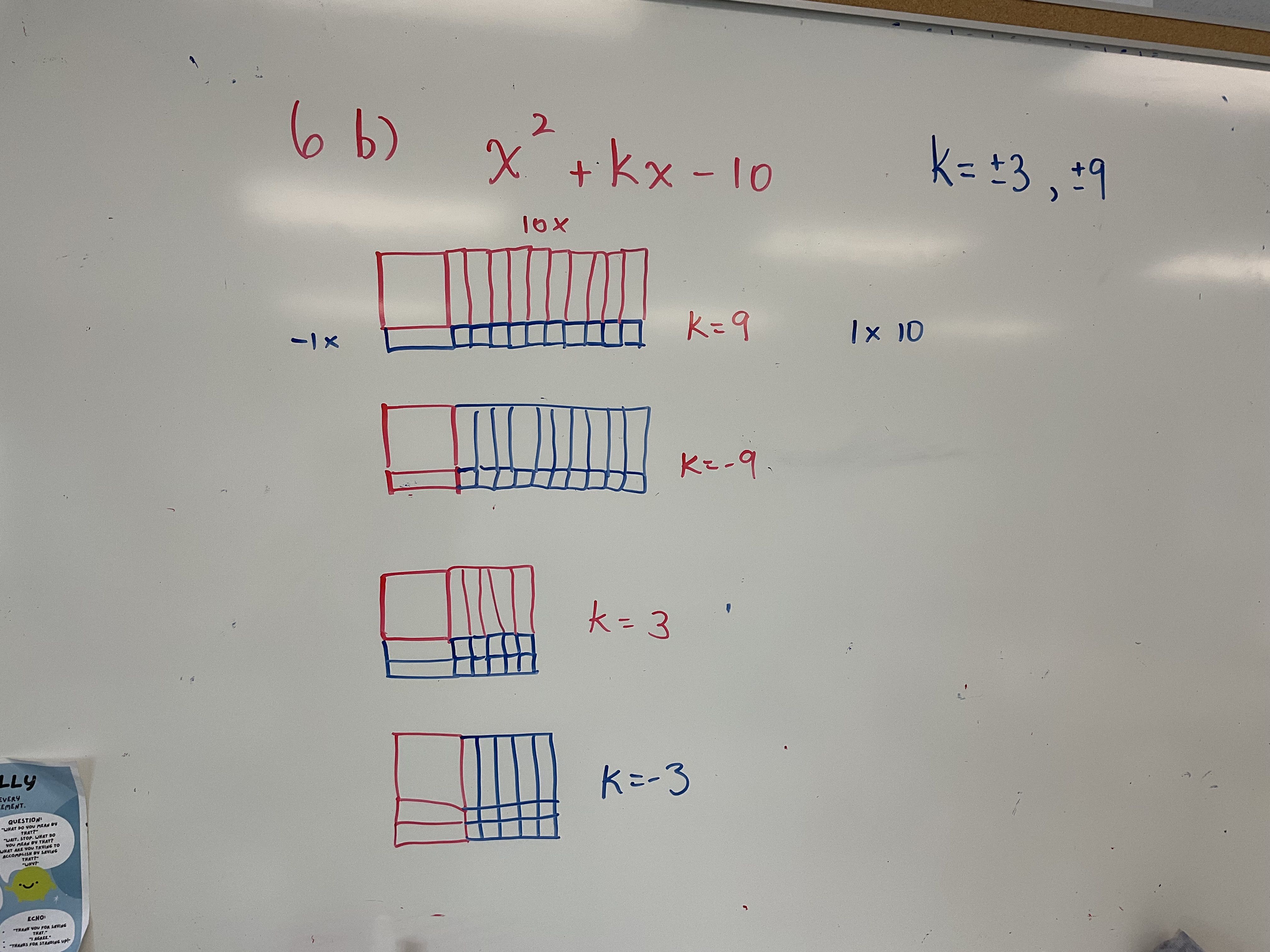 In grade 10 today we were looking at what value of “k” would make expressions factorable.