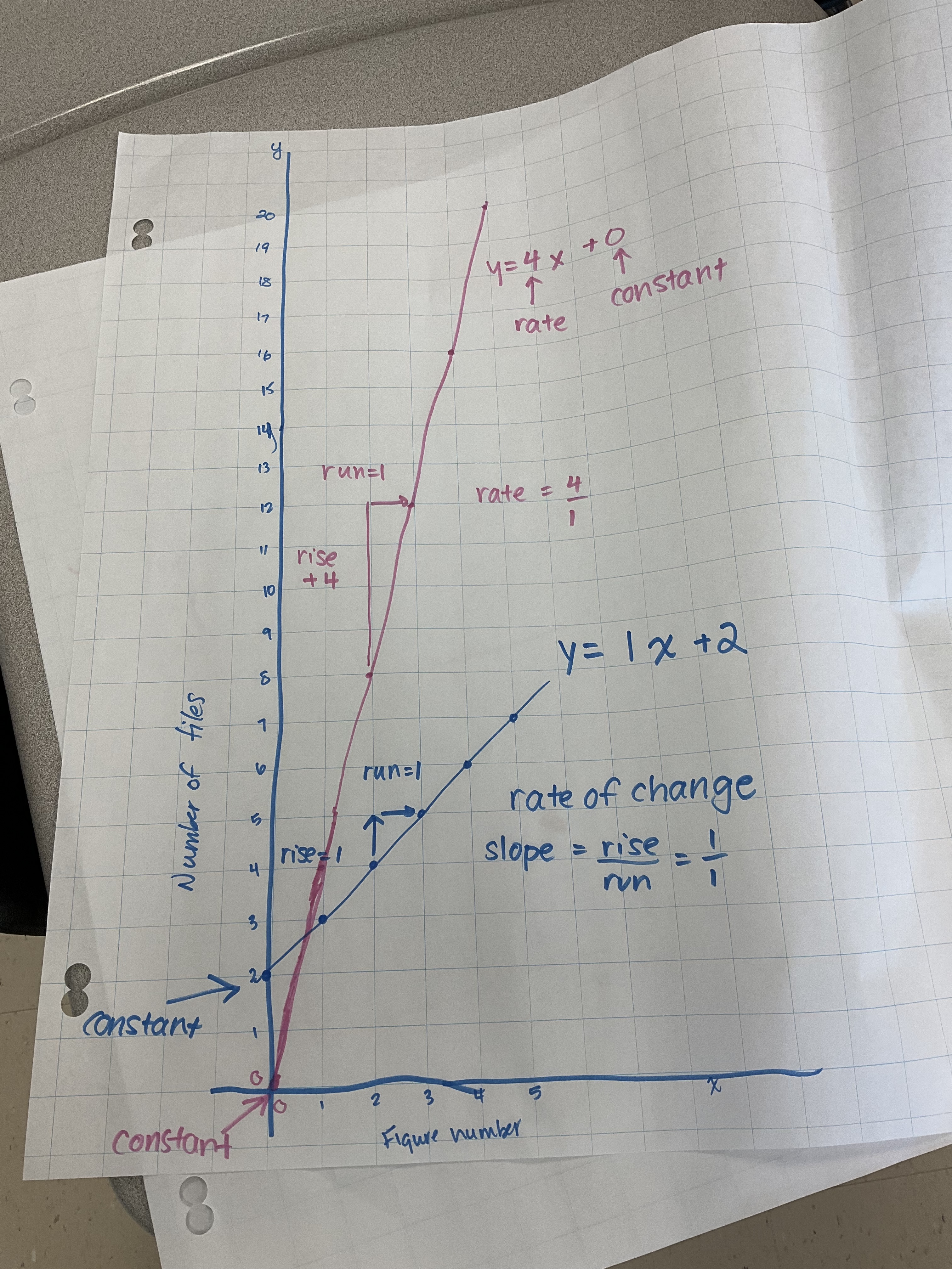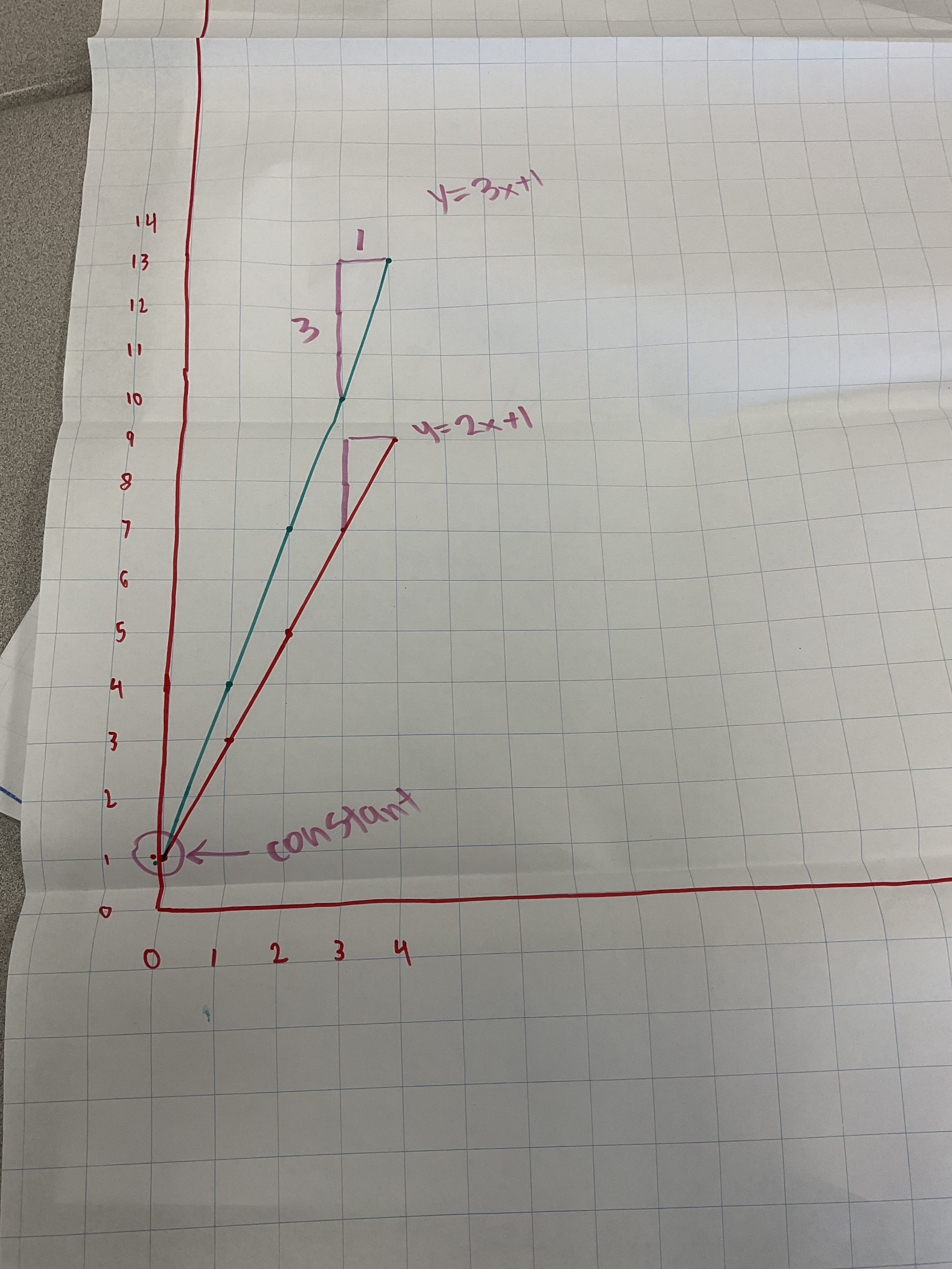 Groups had 2 pattern rules to explore and graph on the same axes with different colours.