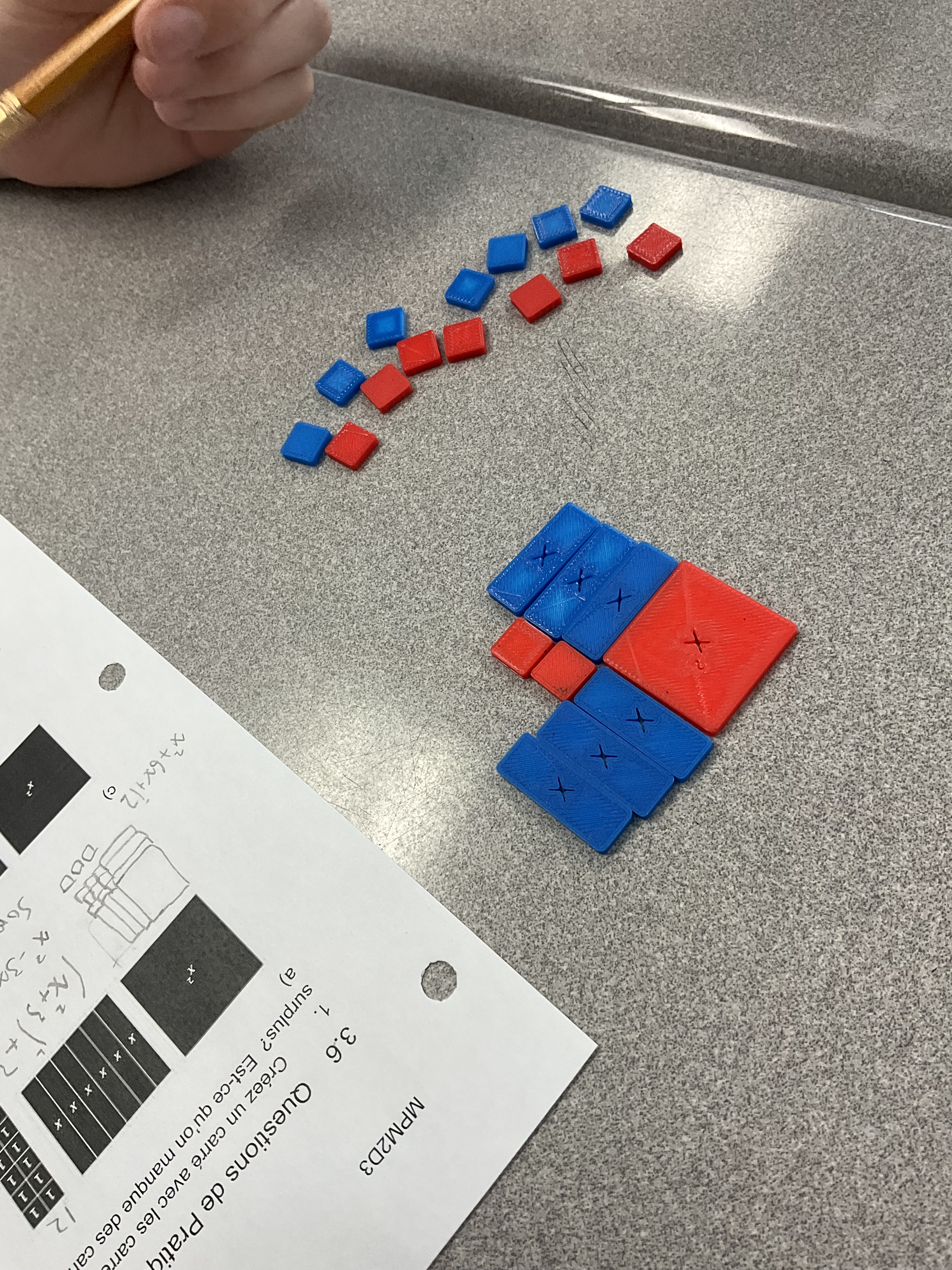 algebra tiles are a great low-tech solution for teaching engaging lessons while faced with a network outage. It appears we’re working without internet, online class resources, and very limited access to printing for the foreseeable future. Glad to have the consistency of tiles and graph paper, and lots of whiteboard markers. We will still be able to make great use of our time.
