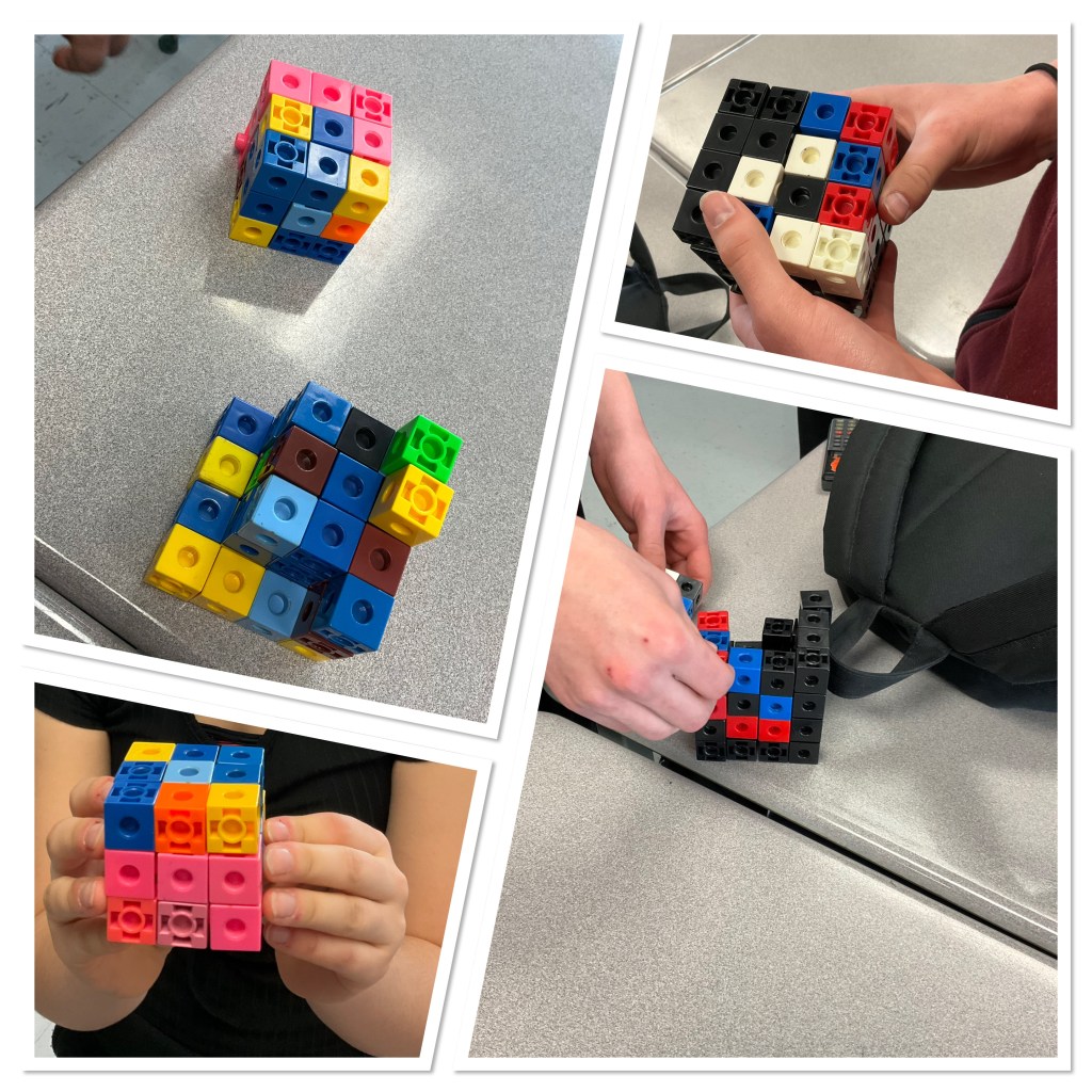 To help model their thinking, some groups used the linking cubes we have in our room. The concrete tools really help us visualize 3 dimensional problems.