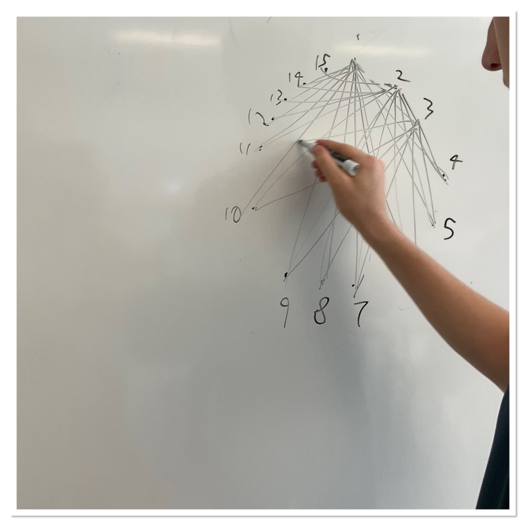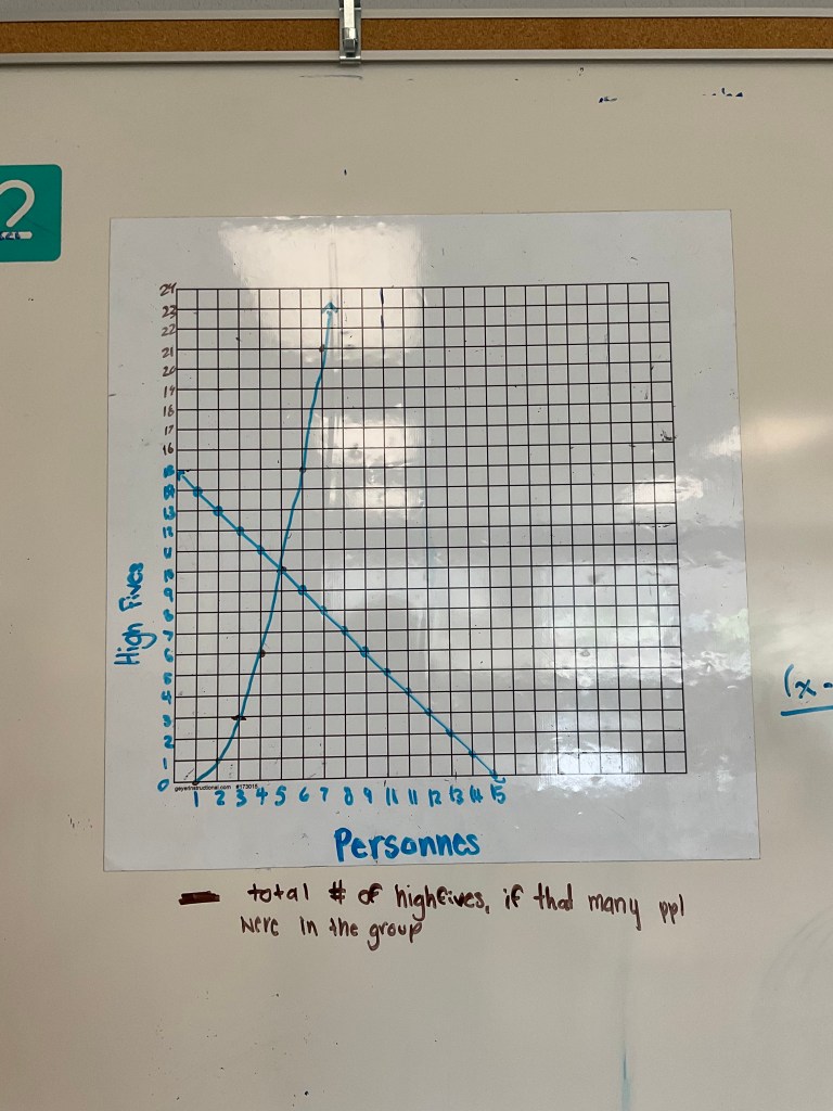 Today in grade 10 we explored how many unique high fives there were in the room. We defined a high five as unique when person A high fives with person B. If Person B then high fives person A it doesn’t count.