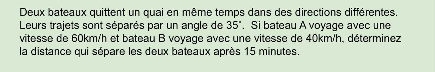 I added an extension for groups who finished early, asking how far the boats would be from each other after 45 minutes. This allowed us to enter into a nice discussion about similar triangles.