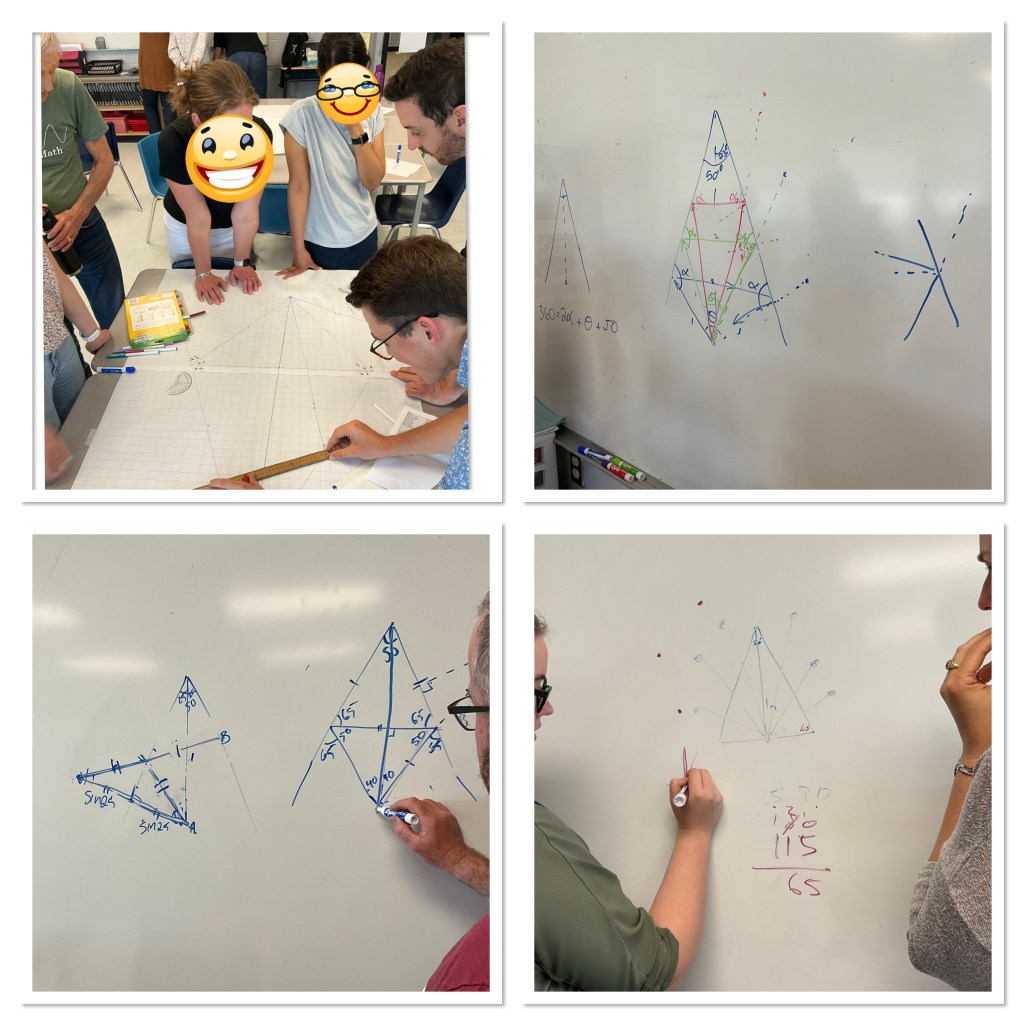 We needed our knowledge of reflection from science, and triangles from math. We didn’t get to the answer for this problem, but we have lots to consider and think about. Sometimes we think that math needs to happen in 75 minutes, but for some problems they need more time. Time to make connections with other math/science, time to think of different approaches, time to do the calculations, or time to make a good plan, or a generalization of patterns that you see. We need to give ourself the time to be playful with the math, and enjoy the collaboration and the journey to the solution.