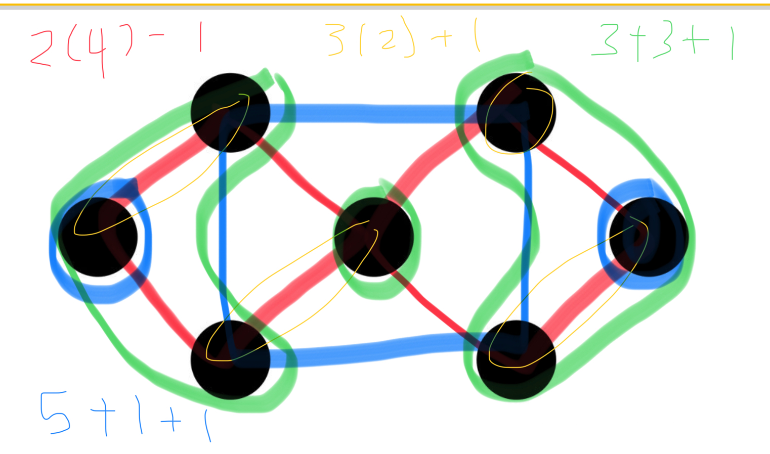 Dot images from Number Talk Images are flashed on the screen for 3 seconds, and then students are asked how many dots there were and how they knew. For this one, some students used “fast counting” since there weren’t so many dots. Others saw the dots in groups and showed how the groups helped their counting. We had fun annotating the picture using all the colours, and representing our thinking with math as well.