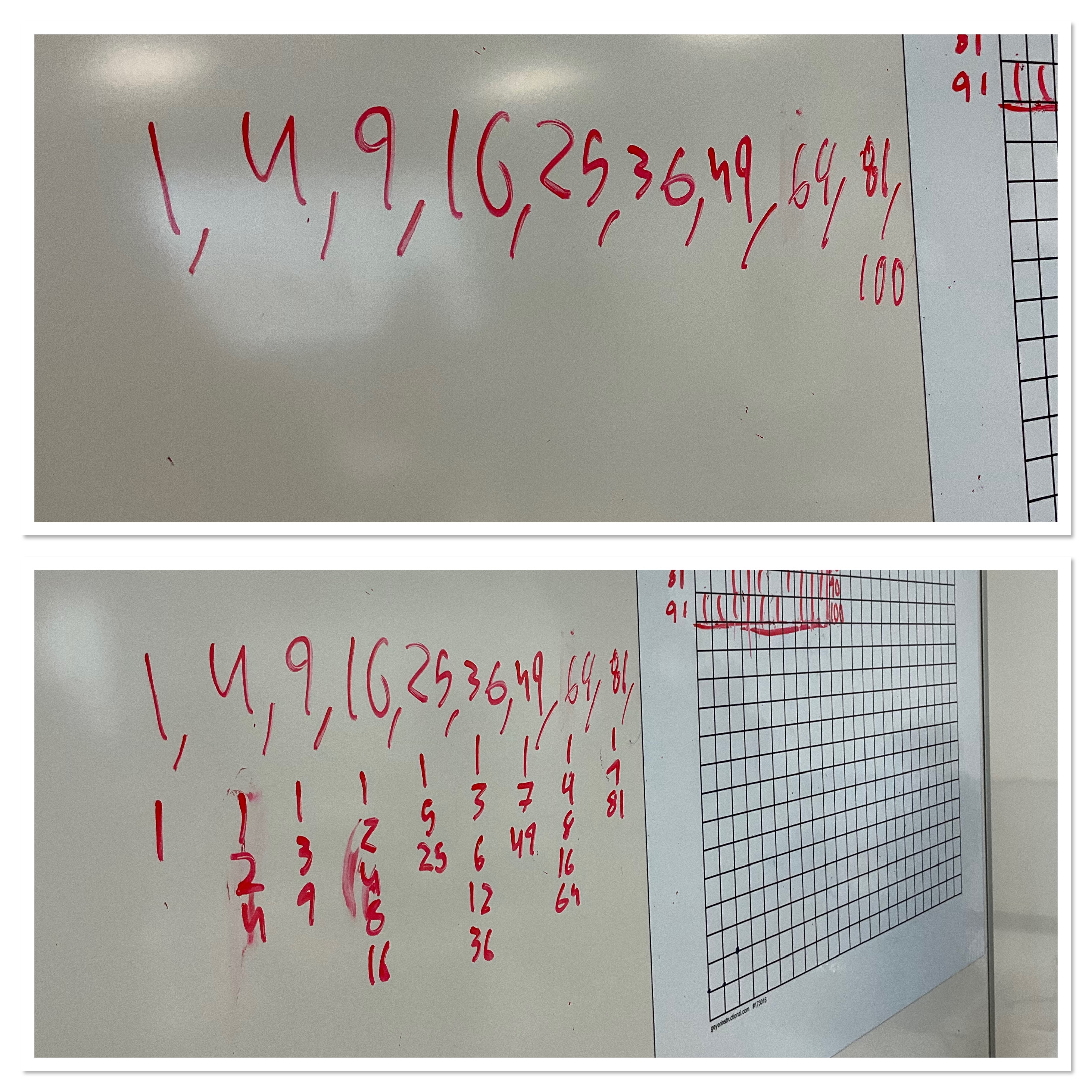 From there, some students saw that the numbers increased by increasing amounts in a predictable way. Others saw that these numbers are all square numbers.