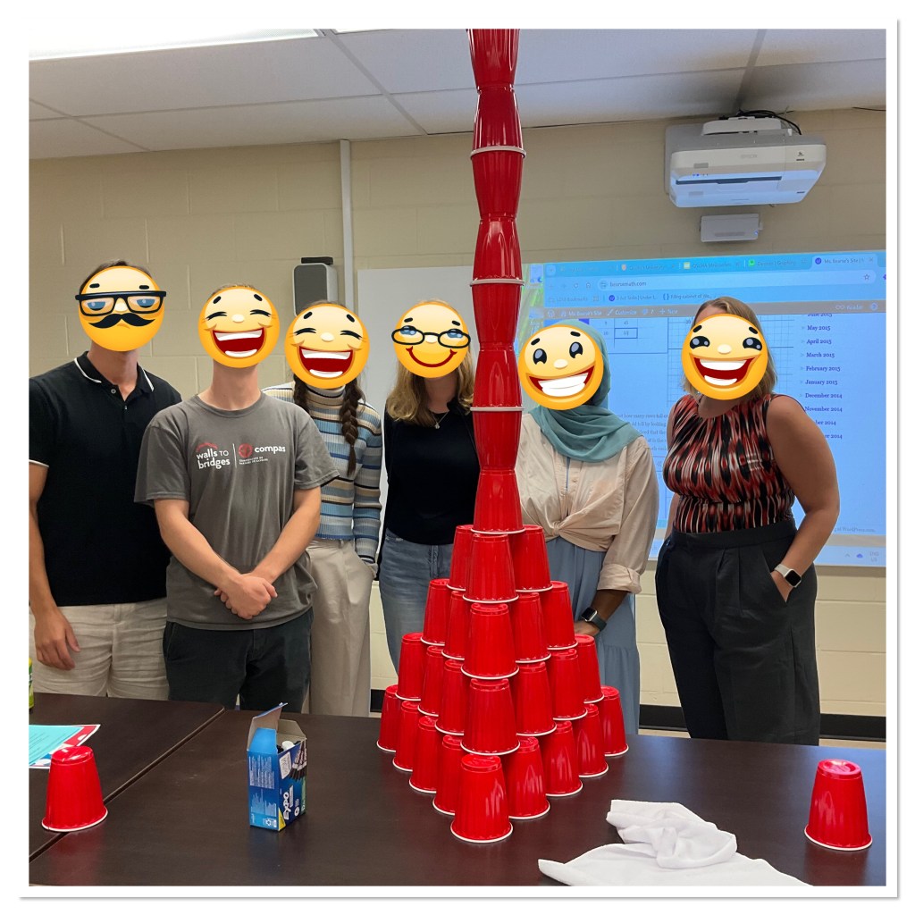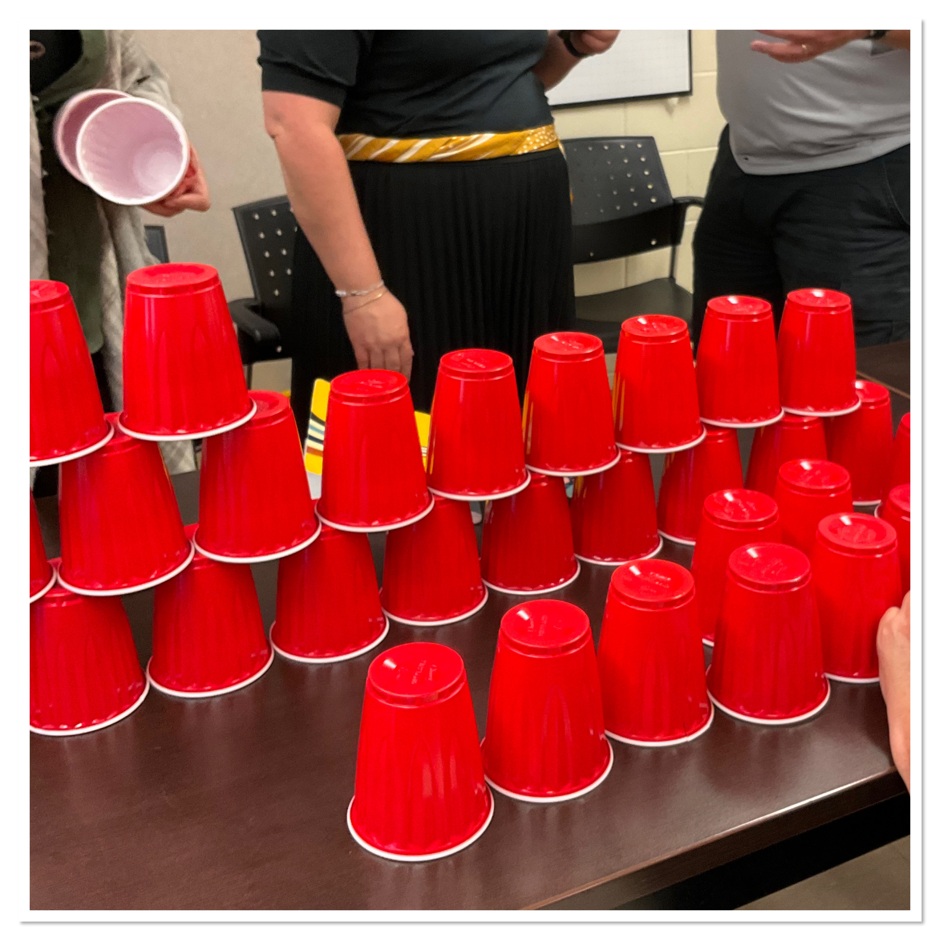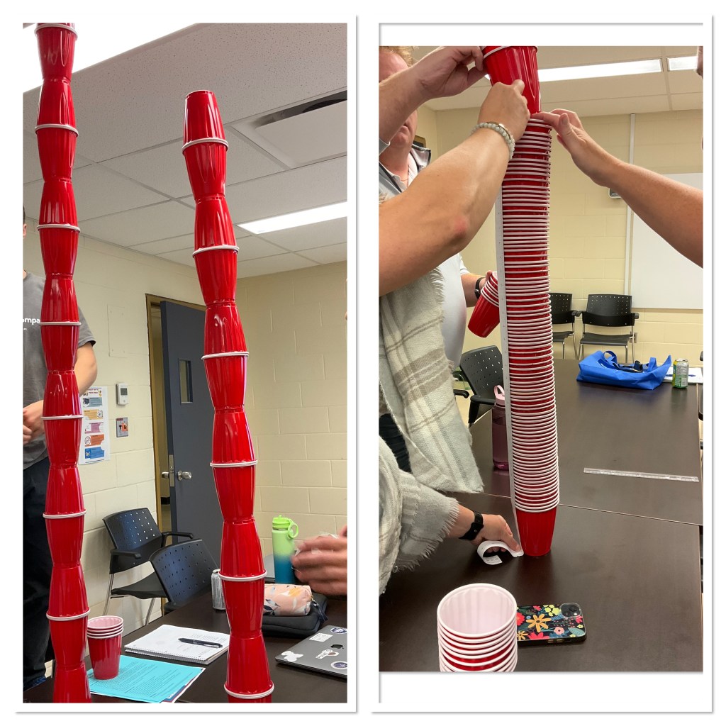 The most fun part for me was when we did a cup stacking task. The challenge was the same as I had brought to my classes this week: to build a stack of cups as tall as me.