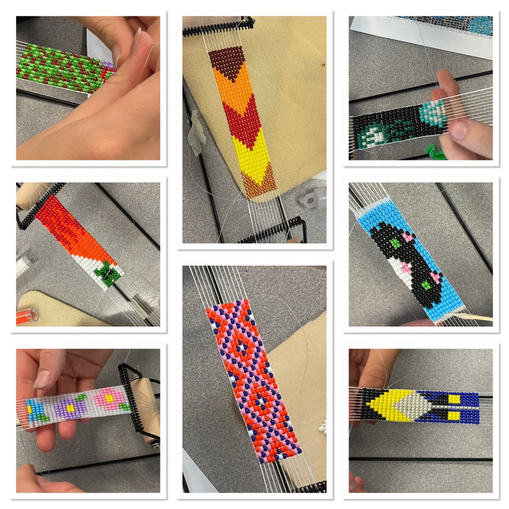 Tomorrow most of us will be weaving in ends and gluing to prepare for attaching hide to make bracelets or keychains.