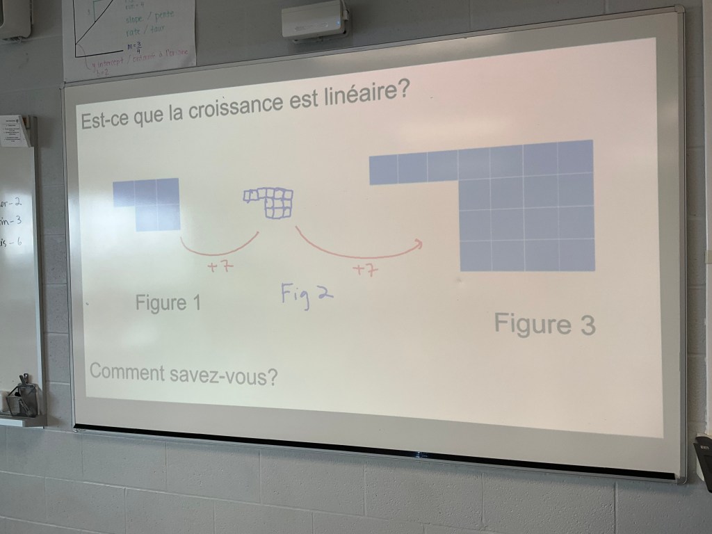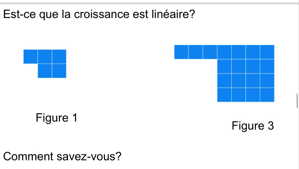 In grade 9 we were exploring linear and non-linear patterns. We had to decide if this pattern is linear or non-linear.