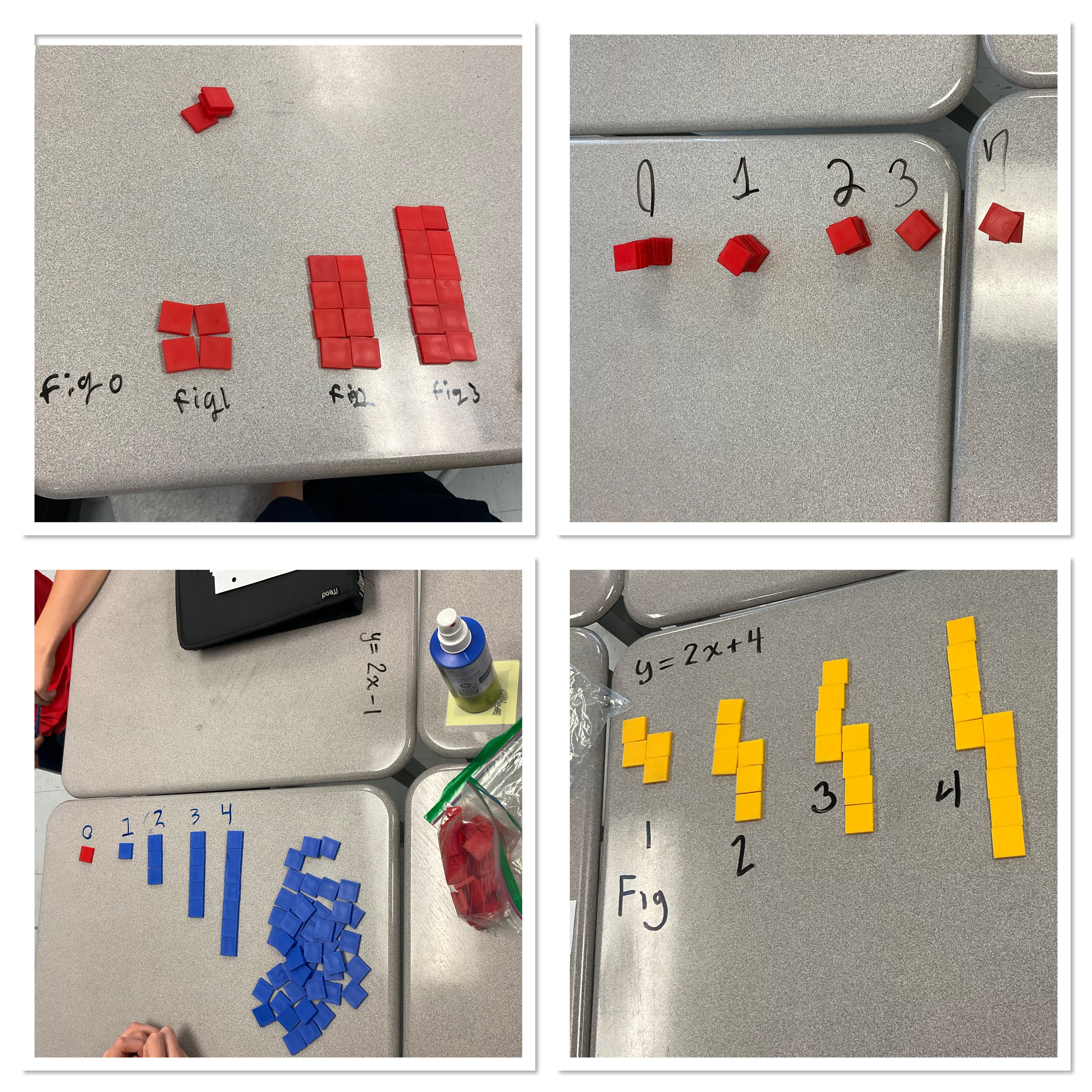 Today in grade 9 we started graphing lines. We used our skills in visual patterns to help us out. Each group got a pattern rule and 1 inch square tiles to build the pattern. We needed figure 0, figure 1, figure 2, figure 3, figure 4 at least.