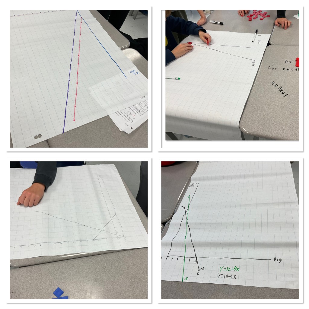 Next the dots were connected to form the line. Groups were given a different pattern rule and we did the same steps making a second graph superimposed on the first.