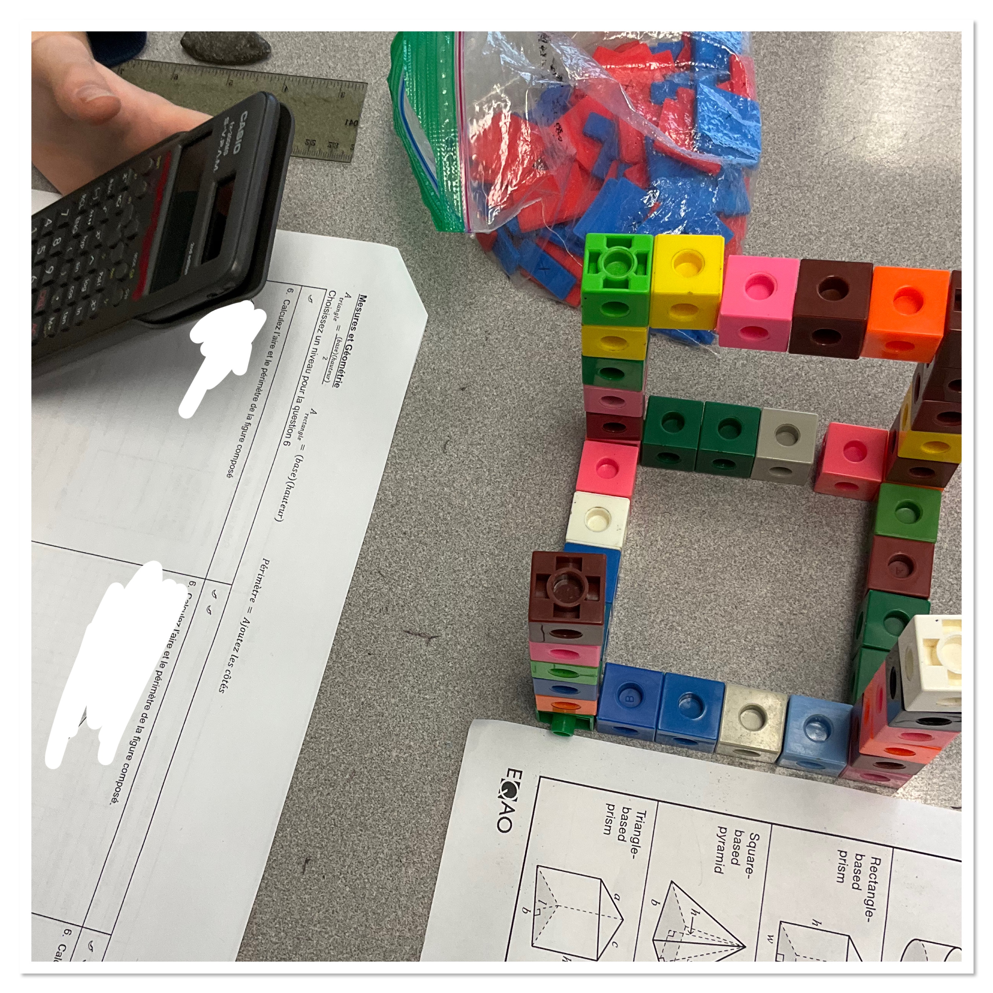 We make sure everyone has what they need, the same manipulatives as we use in class are available for the test. This test some students used algebra tiles, and linking cubes to help model the algebra and measurement questions. There’s also a little “roche dans la poche” (a smooth stone) that’s kind of like a worry rock that students have to help keep us grounded and focused.