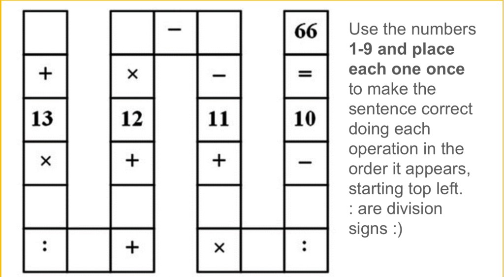 We worked at it in small random groups for quite a while. I know that my group struggled with where to start, and if to work forwards or backwards, and we kept getting confused because we were instructed to NOT use BEDMAS which is hard.