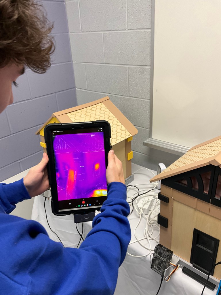 The houses were running all night, with their little furnaces keeping them at a temperature of 30 degrees. We came together today to learn the results, and to see where there are leaks by using a thermal imaging camera.