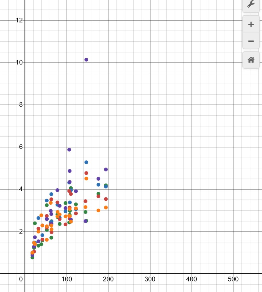 We spent some time at the start of class making graphs by hand and with Desmos in our groups, and then using them to predict what we thought would be the end results.