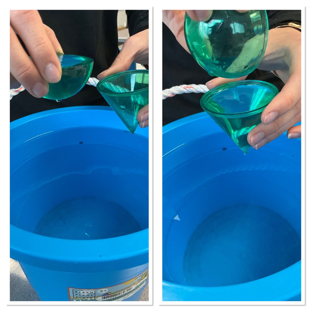 To prove that it was filled 2/3 of the way, we used the cone and sphere from the solids set.