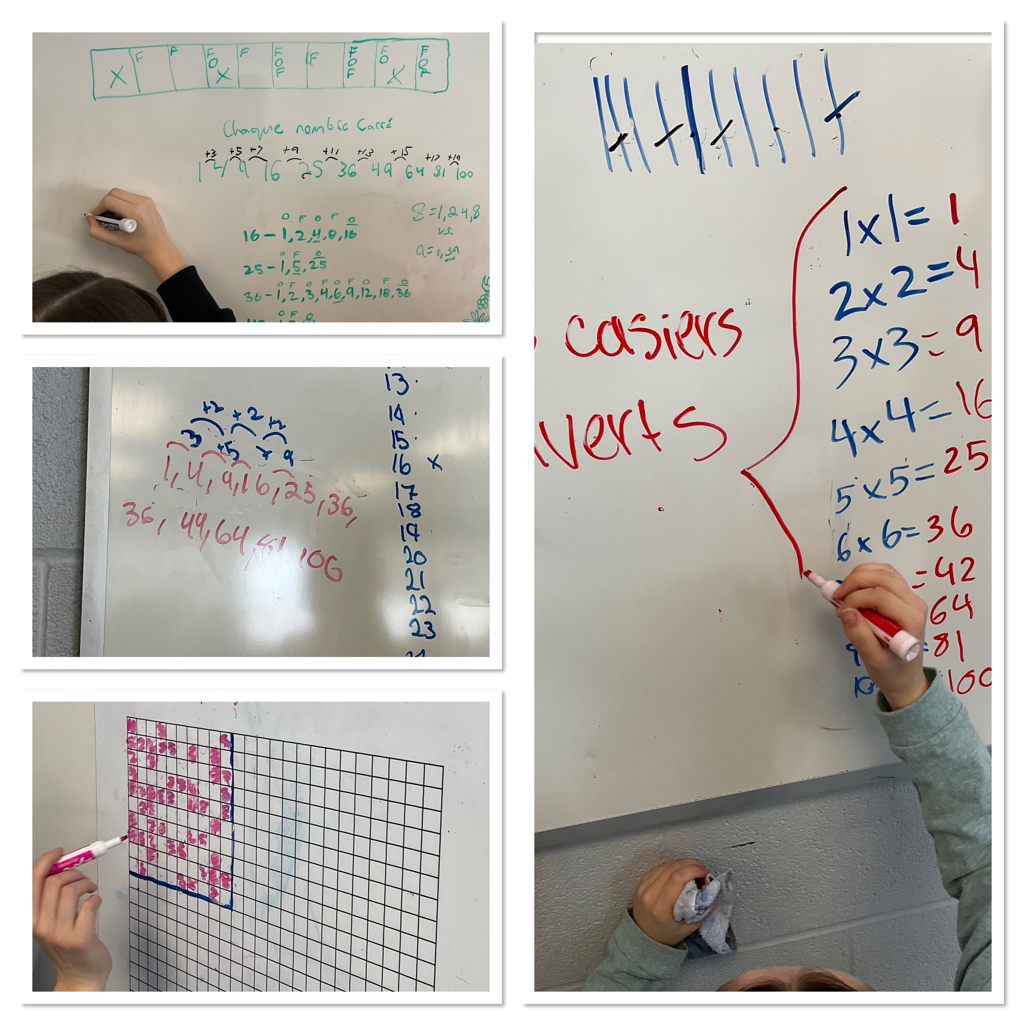 People caught on to the fact that the open lockers will be the ones that are square numbers. This is because they have an odd number of factors. We also noticed that the numbers go up by 3,5,7,9,… and that the 2nd differences (the change in the differences) is 2 each time.