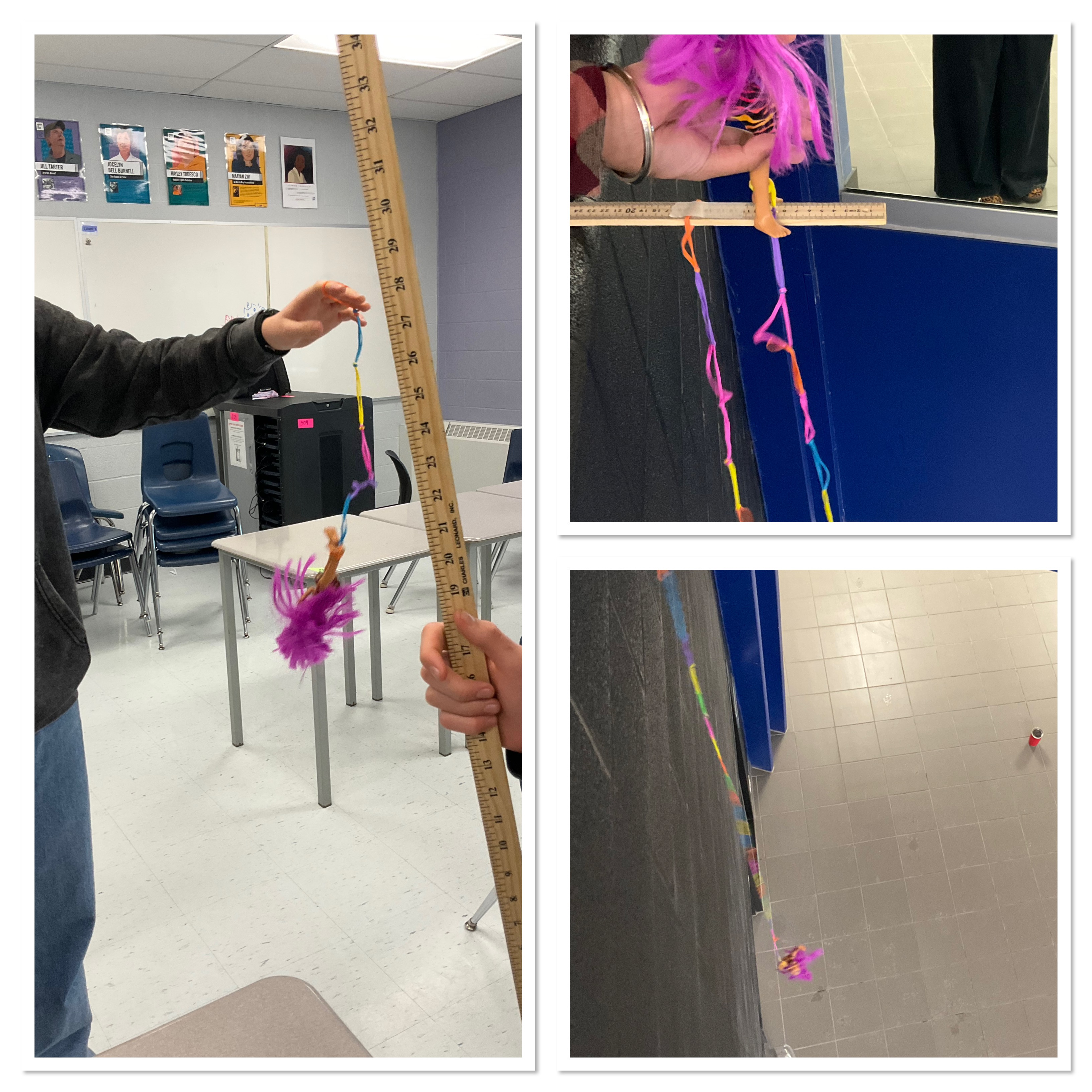next we did some testing with a few elastics, and then used proportional reasoning to estimate the number of elastics we’d need for a safe but thrilling bungee jump.