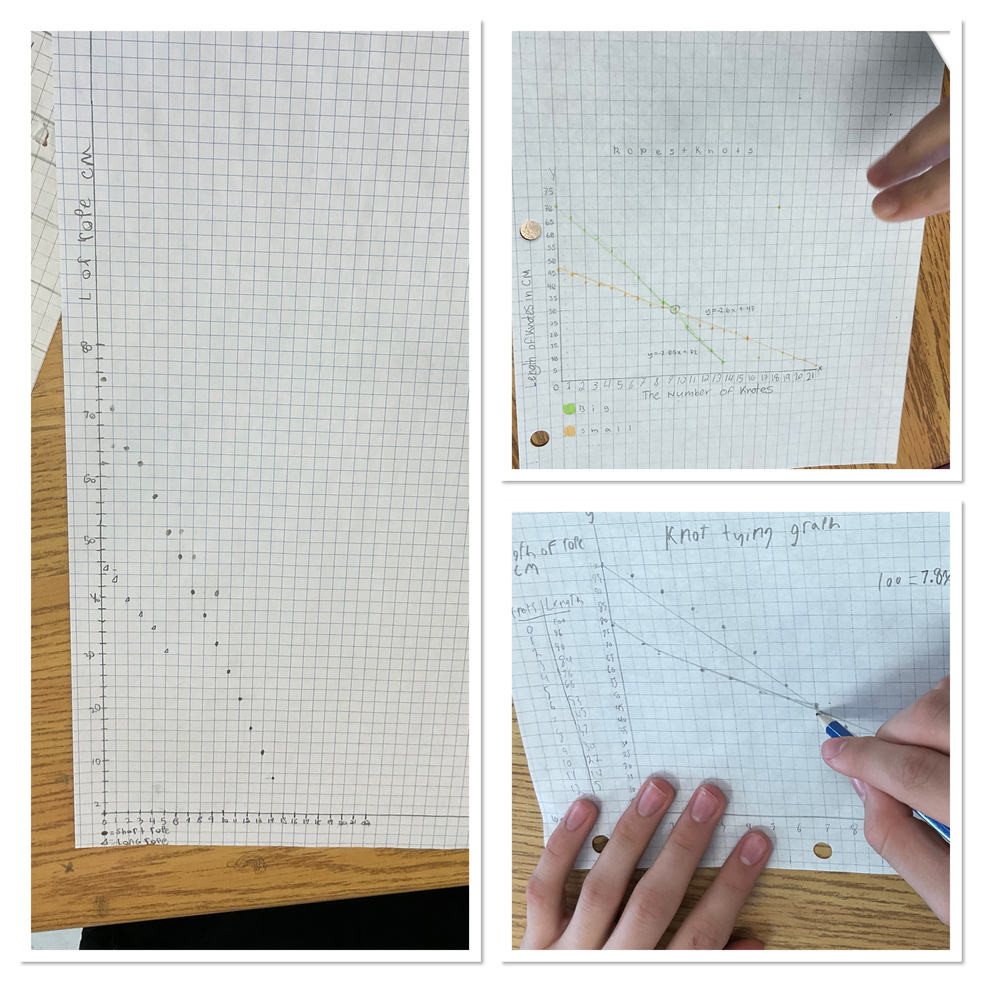 We co-constructed an exemplar of a graph, and each group made progress on interpreting their data. We made connections between the thickness of the rope and the amount of rope consumed per knot.
