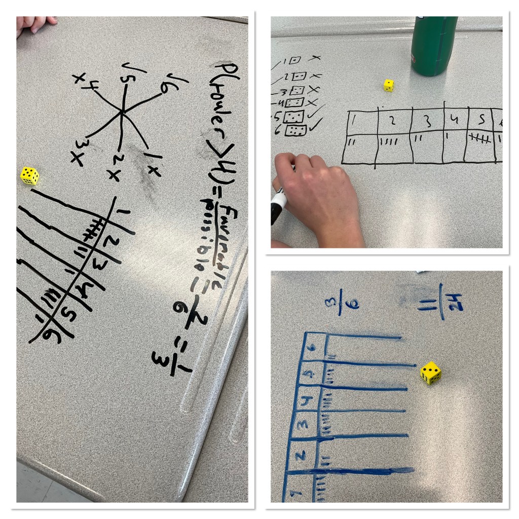I’m working with a grade 8 class for the next little while, once a week. Today they were doing experiments and comparing theoretical and experimental probability.