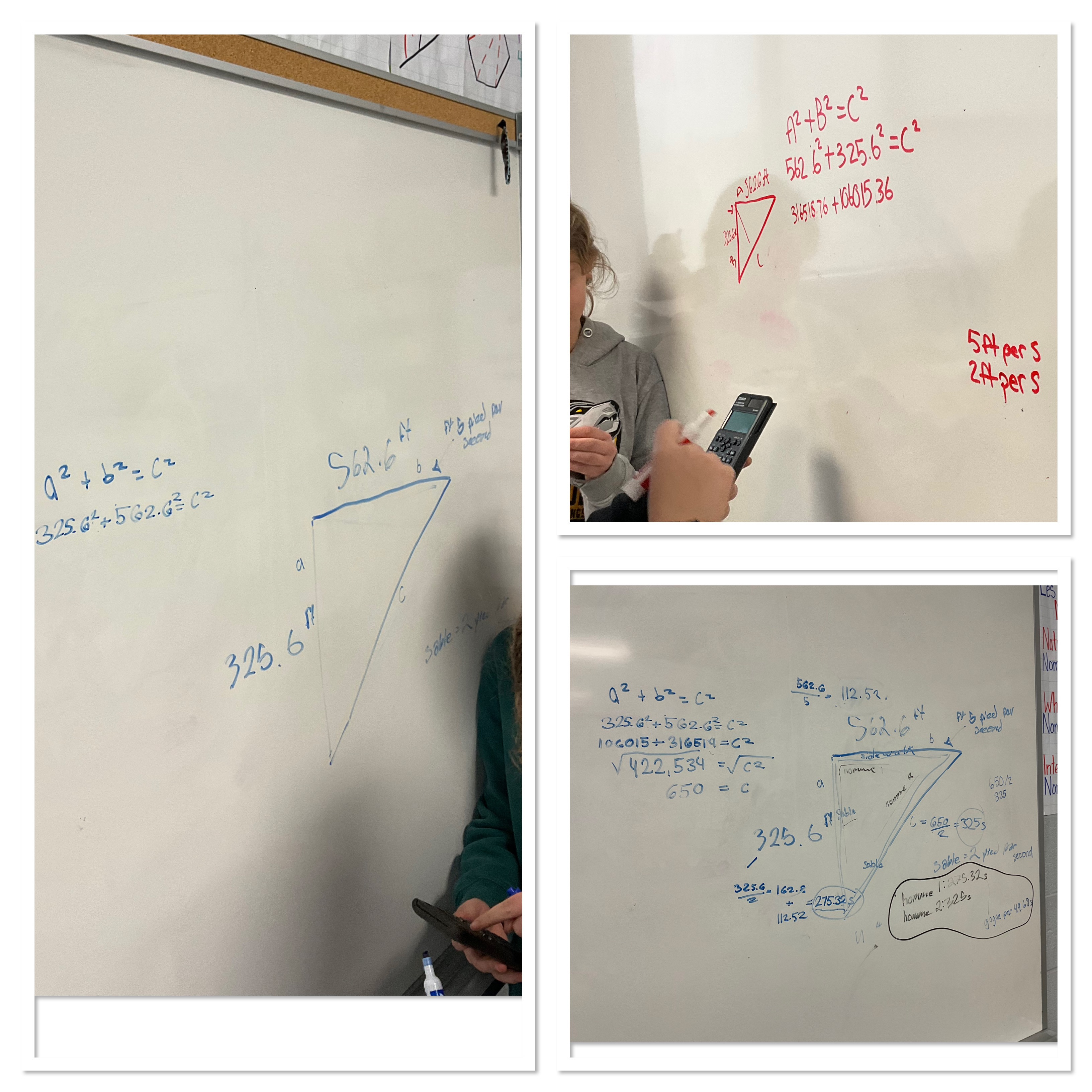 We had a good time working with unit rates, and pythagorean theorem, and then converting time to minutes and seconds to see how much time separated the two people at the end. I had a hard time locating the final video in the moment (websites were down), but here it is!
