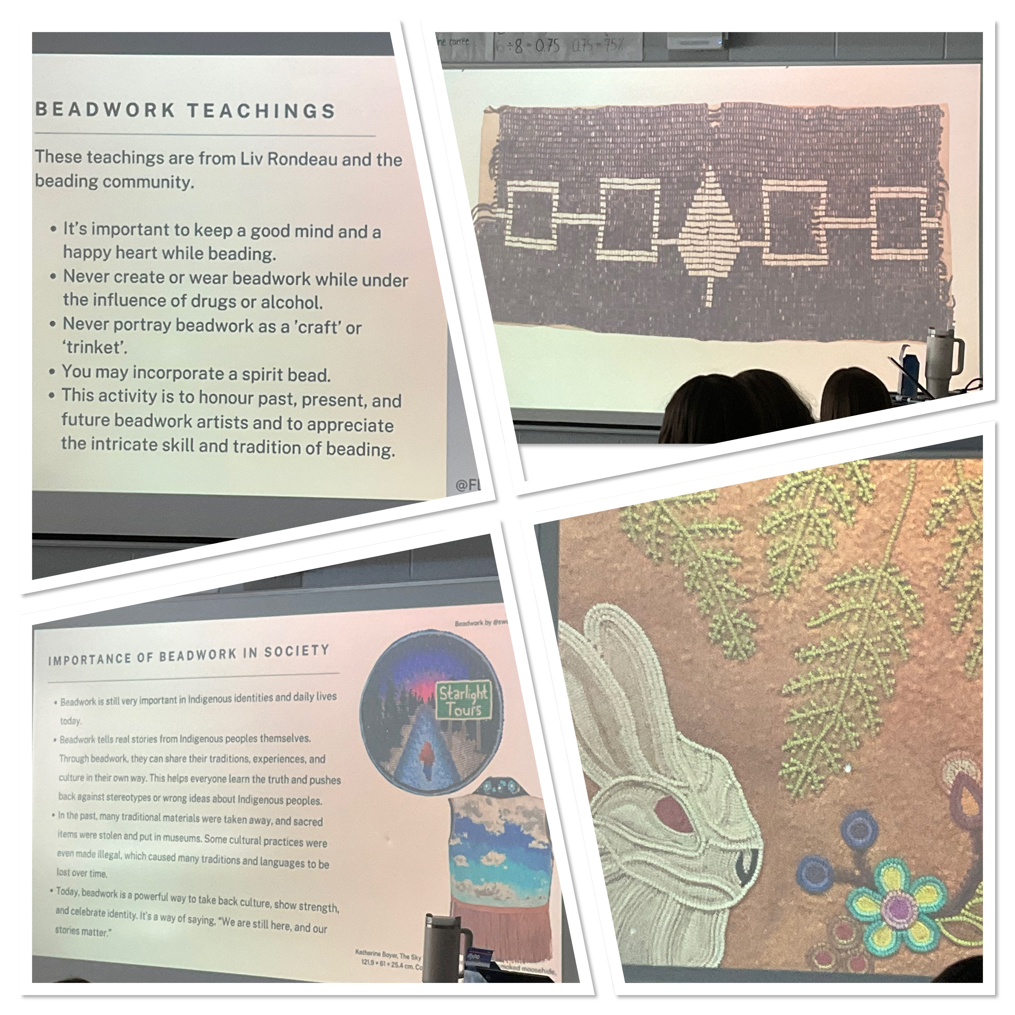 Grade 9s learned about loom beading today from a member of the Indigenous program team at the school board. We have a project we are working on this week: to learn about patterning, symmetry, ratio, percent and area while designing a beaded bracelet or key chain.