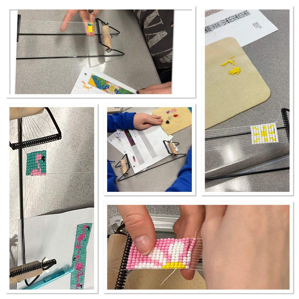 Today my grade 9s started their beading projects that we planned yesterday. They are all looking so good!
