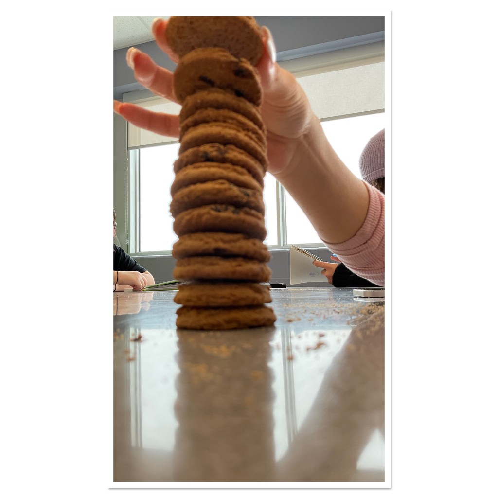 Groups were getting pretty keen, and a little competitive. Some started experimenting with how to stack the cookies, or even “sanding” down the cookies to make them flat.