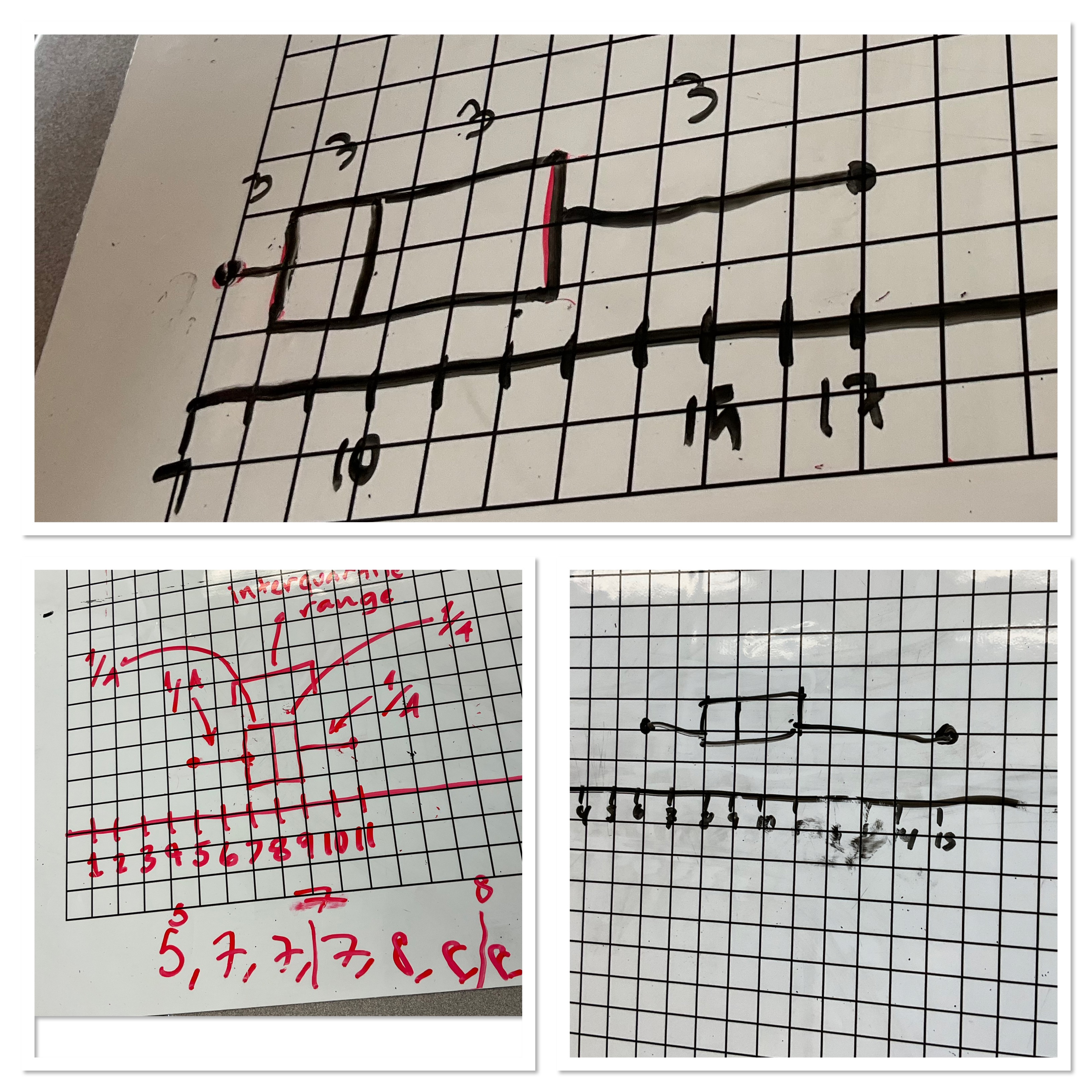 The next step we took was to introduce the idea of a box and whisker plot. We had the data in order to calculate the median, so it was a quick process to calculate the quartiles (the middle of the bottom half, and the middle of the top half).