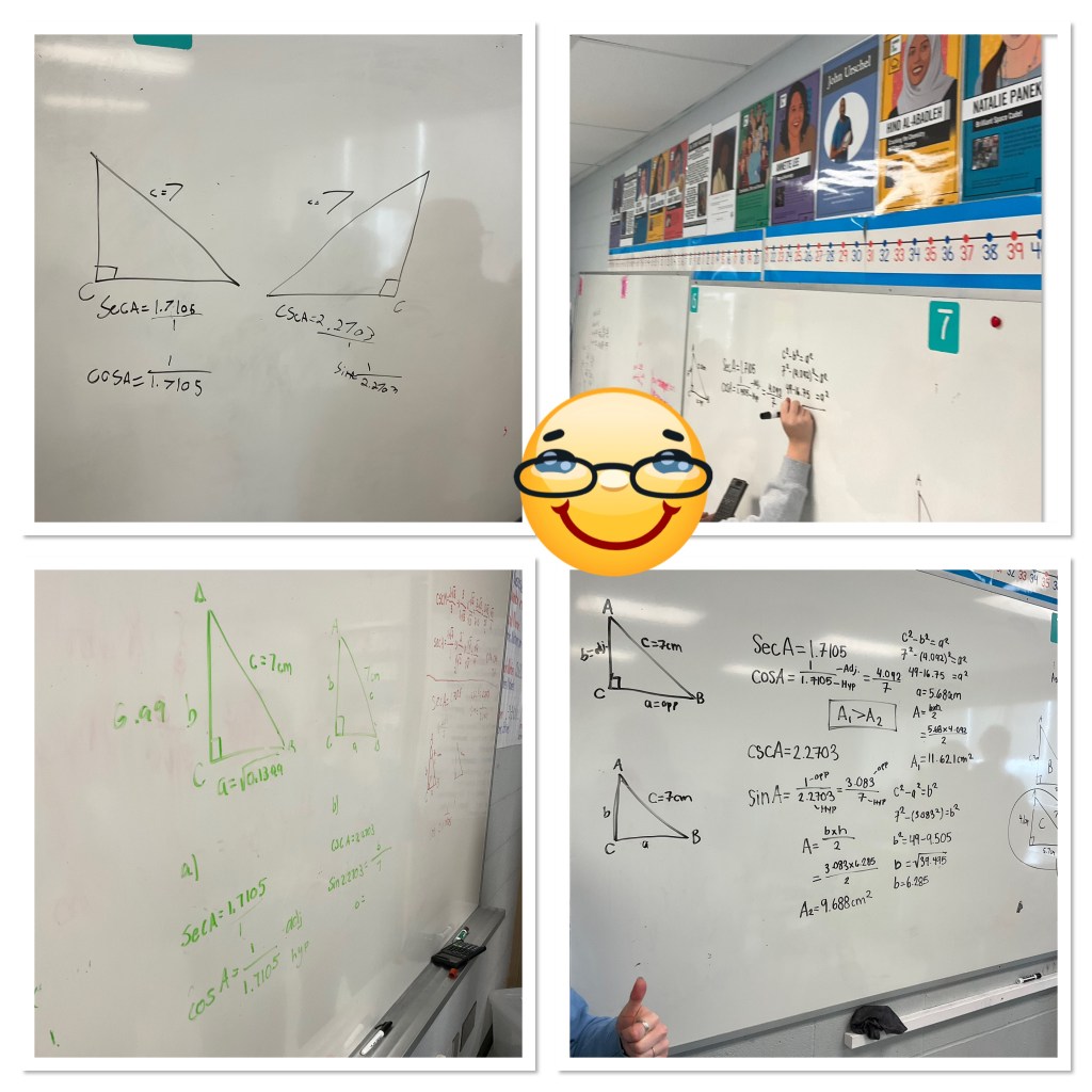 Grade 11s are starting trigonometry, and we have spent some time learning reciprocal trig ratios, practicing how to solve for sides and angles.