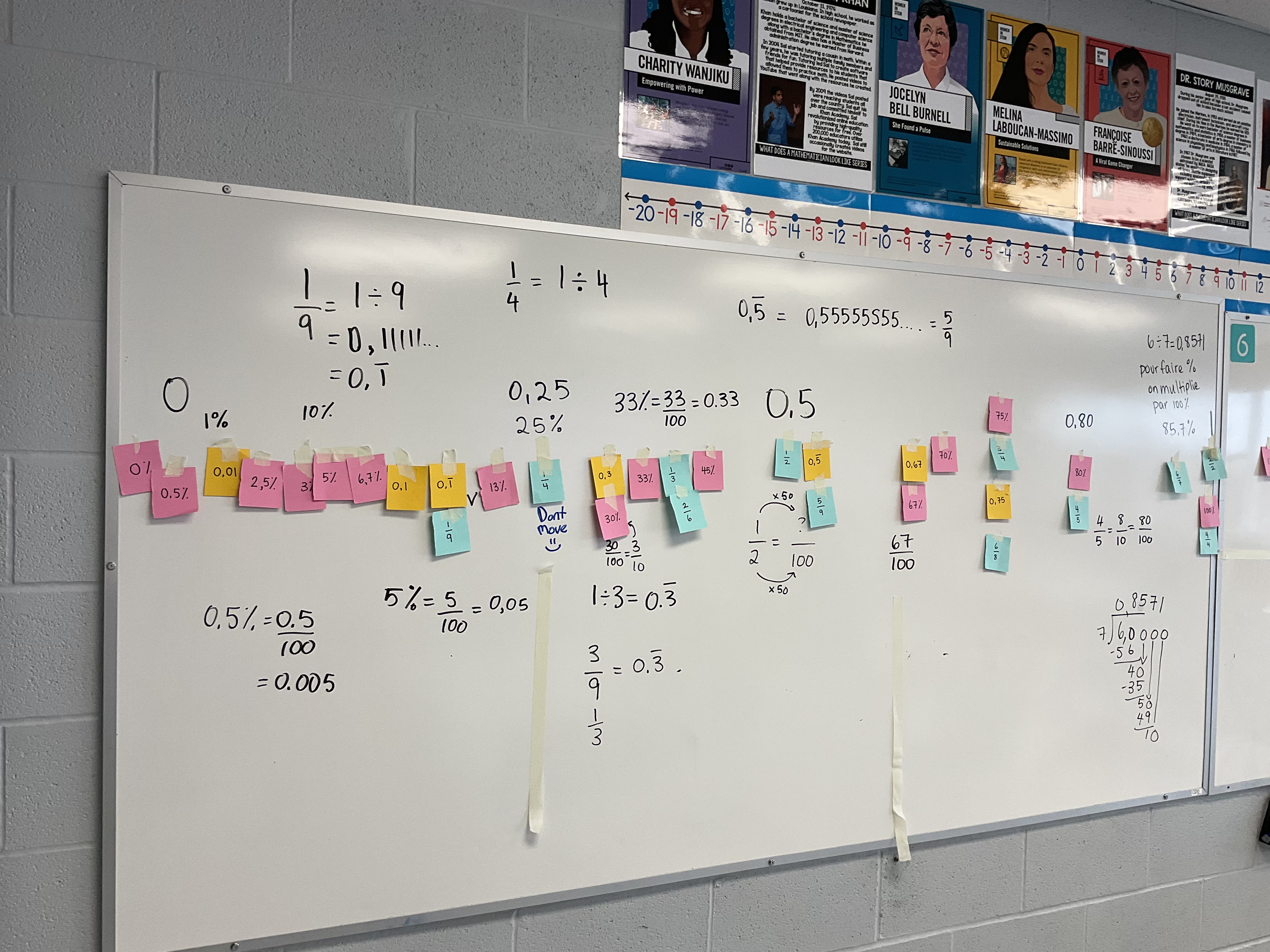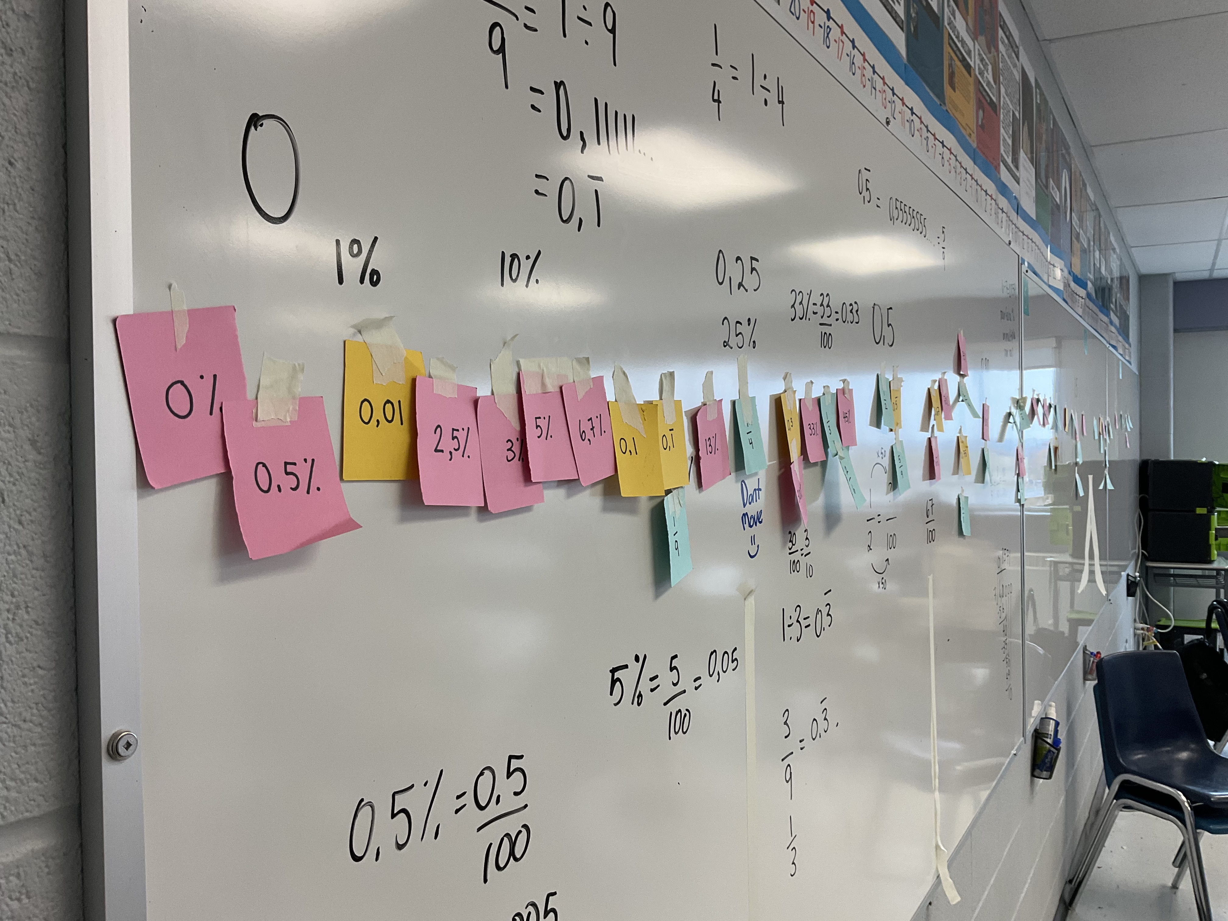 We added to our wall of fractions and decimals today. We now can slot percentages into the mix.