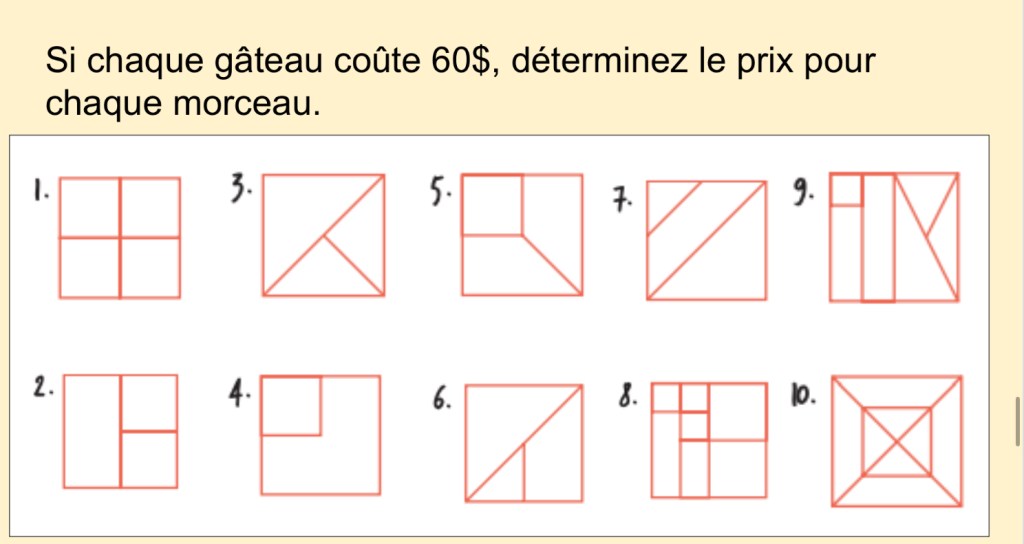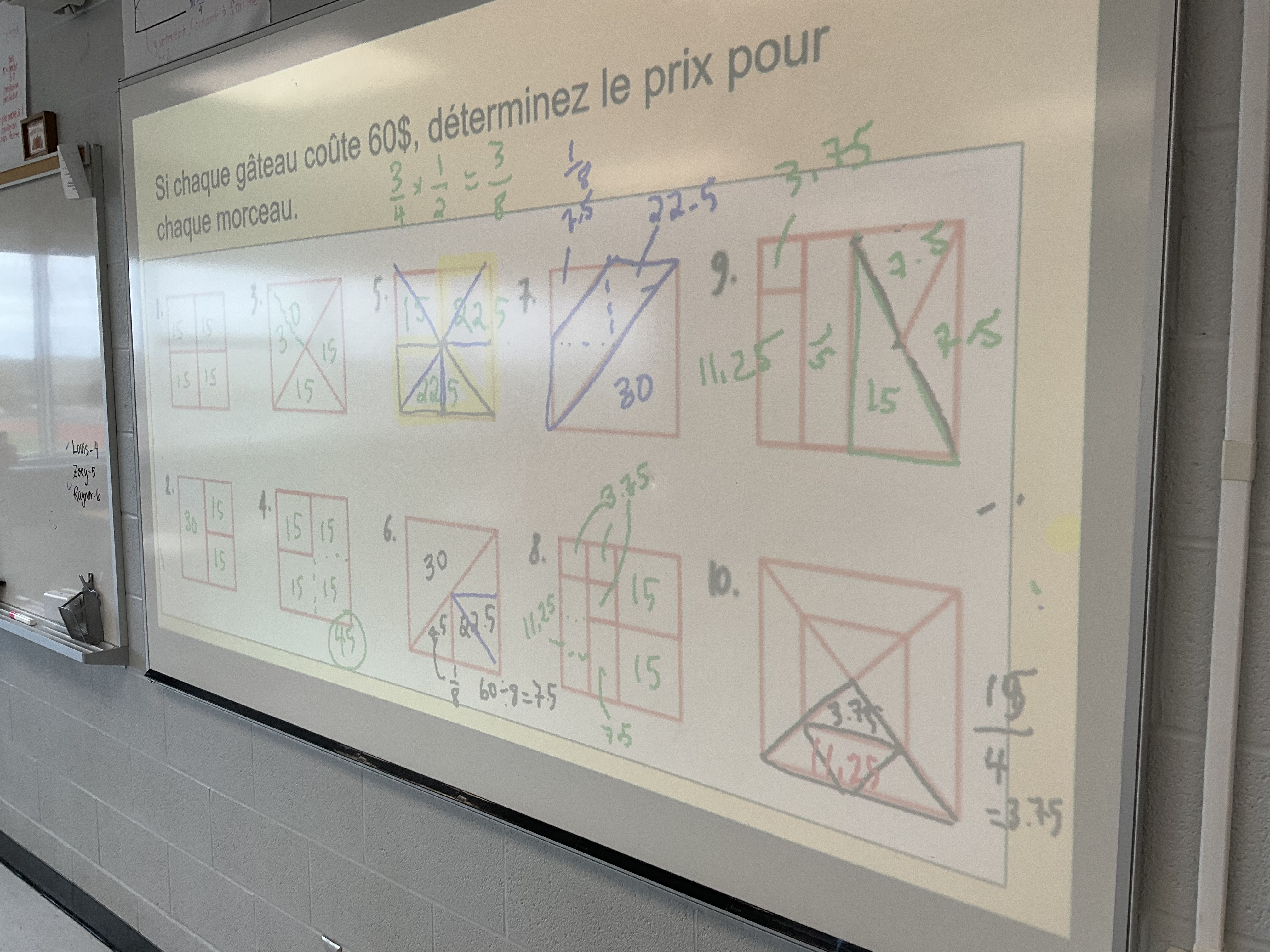 Groups had different approaches to their calculating. Some looked at fractions, some divided the 60 up, and some did both! Groups were drawing extra lines to subdivide pieces and help them figure things out.