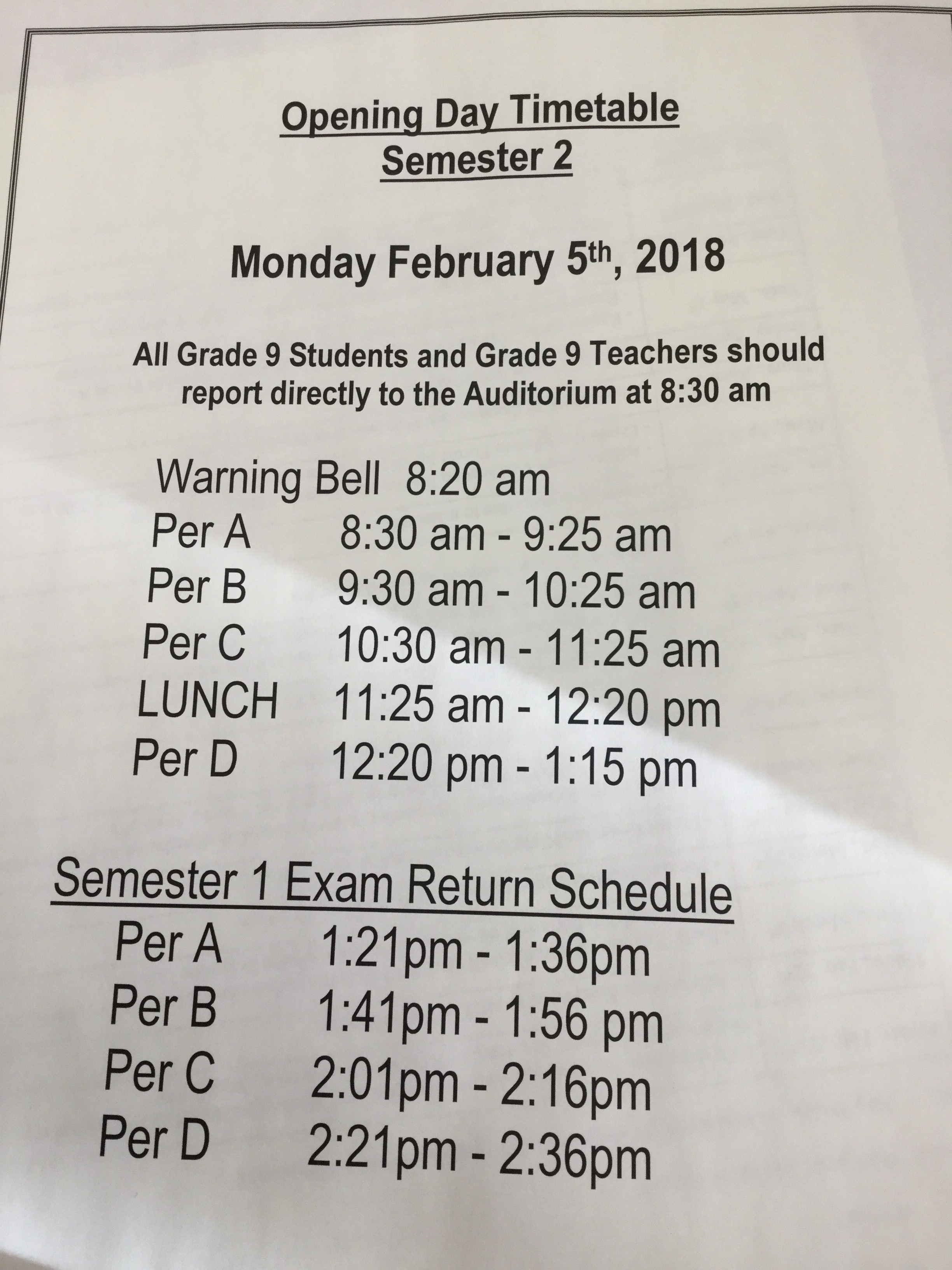 First Day Schedule